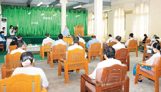တွေ့ဆုံစဉ်ဒုတိယဝန်ကြီးက နိုင်ငံ့ဝန်ထမ်းများဖြစ်၍ နိုင်ငံ တော်အပေါ် သစ္စာစောင့်သိပြီး ပေးအပ်သော တာဝန်ကို ကျေပွန်စွာ ထမ်းဆောင်ရေး၊ နိုင်ငံတော်က ရှေ့လုပ်ငန်းစဉ်များ၊ ဦးတည်ချက် များ ချမှတ်၍ အရေးပေါ်ကာလ အတွင်း လုပ်ဆောင်နေသည် များကို အောင်မြင်စေရန် မီဒီယာ ကဏ္ဍမှ တတ်နိုင်သမျှ နည်းလမ်း များဖြင့် ပါဝင်ဆောင်ရွက်ရေး၊ လူငယ်များအား ဗလငါးတန်နှင့် ပြည့်ဝစေရန် အသိပညာဖြည့် ဆည်းပေးရေး၊ ကိုဗစ်ရောဂါ ကူးစက်မှု လျော့နည်းလာသည် နှင့်အမျှ မကြာမီ အခြေခံကျောင်း များ ပြန်လည်ဖွင့်လှစ်သည့်အခါ အဆင်သင့်ဖြစ်စေရန် ကျောင်း သား ကျောင်းသူများ ကာကွယ် ဆေးထိုးနှံပေးမှုအတွက် အသိပညာပေးခြင်း လုပ်ငန်းများကို အရှိန်အဟုန်မပျက် ဆက်လက် ဆောင်ရွက်ရေး၊ ရွေးကောက်ပွဲ ကျင်းပချိန်တွင် မဲပေးခွင့်ရှိသူ တိုင်း ဥပဒေနှင့်အညီ မဲပေးနိုင်စေ ရန် နိုင်ငံသားစိစစ်ရေးလက်မှတ် များ ထုတ်ပေးနေသည့် ပန်းခင်း စီမံချက် အောင်မြင်ရေး ပညာပေး ခြင်းနှင့် ပူးပေါင်းဆောင်ရွက်ရေး၊ မိမိတို့ တာဝန်ထမ်းဆောင်ရာ ဒေသ ဖွံ့ဖြိုးရေးတိုးတက်ရေး လုပ်ငန်းများကို ပူးပေါင်းဆောင် ရွက်ရေး၊ ရုံးဌာနနှင့် စက်ရုံ အလုပ်ရုံများ လုံခြုံရေးဂရုပြုရန် နှင့် ဆက်လက် ဆောင်ရွက်ရန် လုပ်ငန်းတာဝန်များကို ဆွေးနွေး မှာကြားသည်။