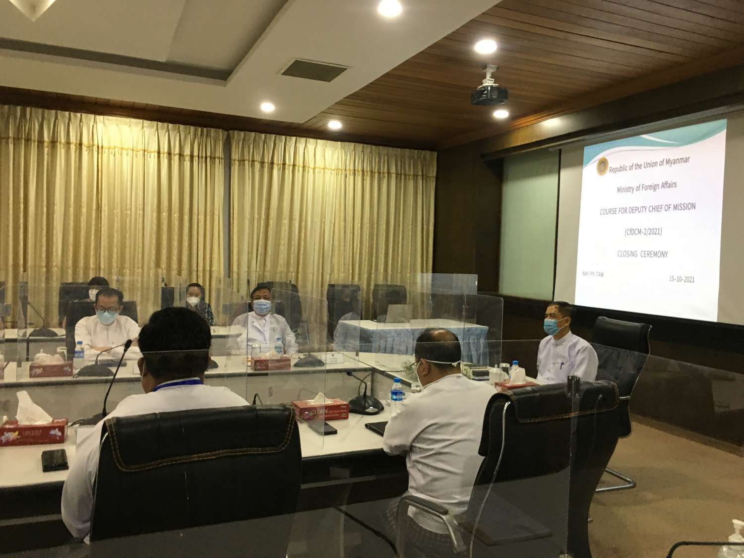 နိုင်ငံခြားရေးဝန်ကြီးဌာနမှ ကြီးမှူးဖွင့်လှစ်သော သံရုံးဒုတိယအကြီးအကဲသင်တန်း (Course for Deputy Chief of Mission-CfDCM) အမှတ်စဉ် (၂/၂၀၂၁) သင်တန်းဆင်းပွဲ အခမ်းအနားကို ယနေ့မွန်းလွဲ ၂ နာရီတွင် Virtual Platform မှ တစ်ဆင့် ကျင်းပသည်။ အဆိုပါ သင်တန်းဆင်းပွဲ အခမ်းအနားသို့ အပြည်ပြည်ဆိုင်ရာ ပူးပေါင်းဆောင်ရွက်ရေးဝန်ကြီးဌာန ပြည်ထောင်စုဝန်ကြီး ဦးကိုကိုလှိုင် တက်ရောက်၍ အမှာစကား ပြောကြားသည်။