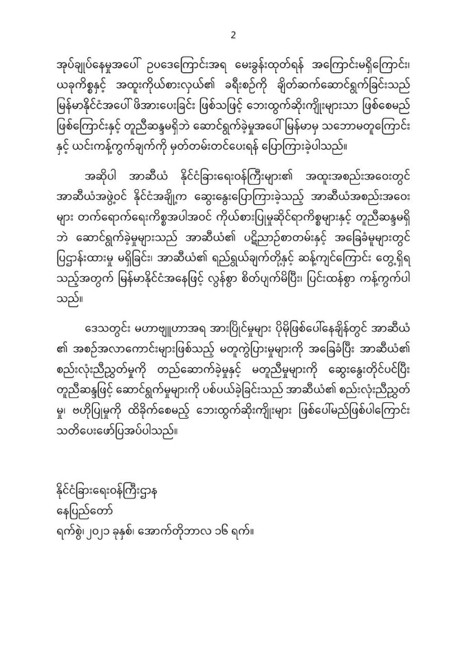 နိုင်ငံတော်အစိုးရ၏ ကြေညာချက်များ