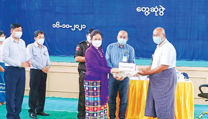 ယင်းနောက် ပြည်ထောင်စုဝန်ကြီးနှင့် တာဝန်ရှိသူများက အထောင်မြို့ရှိ မသန်စွမ်းသူ ၉၁ဦး အတွက် တစ်ဦးလျှင် ငွေကျပ် သုံးသောင်းနှုန်းဖြင့် ငွေကျပ် ၂၇သိန်းသုံးသောင်းကို ထောက်ပံ့ ပေးအပ်သည်။