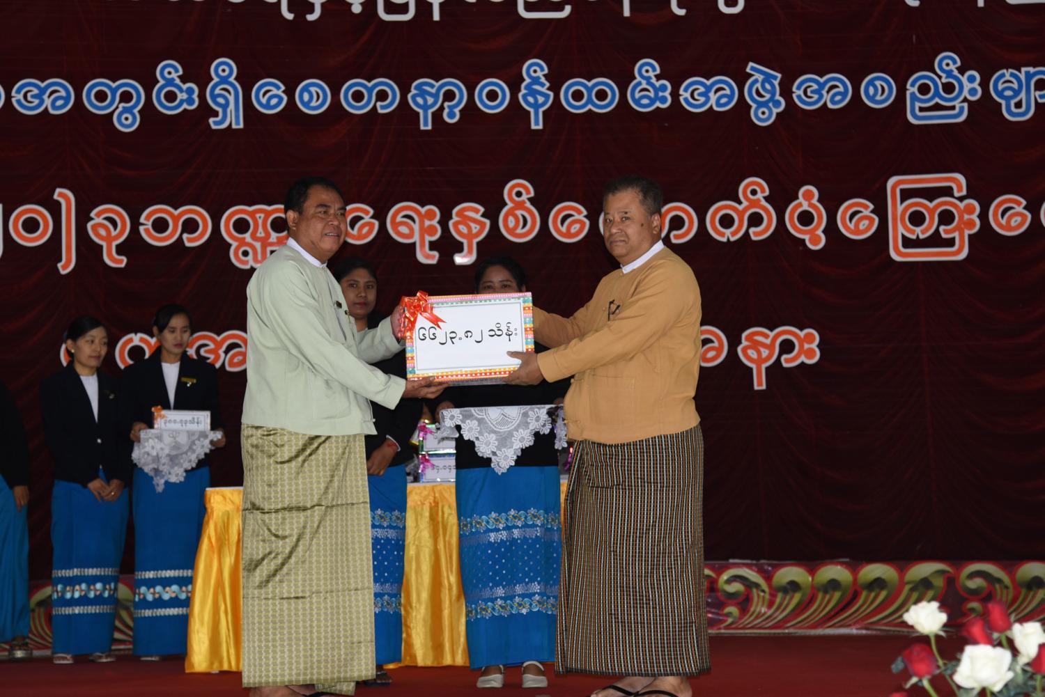 ဆက်လက်၍ လူမှုဝန်ထမ်း၊ ကယ်ဆယ်ရေးနှင့် ပြန်လည်နေရာချထားရေးဝန်ကြီးဌာန၊ လူမှုဝန်ထမ်းဦးစီးဌာန၏ (၂၀၁၉−၂၀၂၀) ဘဏ္ဍာရေးနှစ် ရှမ်းပြည်နယ်အတွင်းရှိ စေတနာ့ဝန်ထမ်း အဖွဲ့အစည်းများသို့ ထောက်ပံ့ငွေ ခွင့်ပြုရန်ပုံငွေ စုစုပေါင်း ကျပ်သိန်း (၆၆၂၃.၈၂) သိန်းကို ရှမ်းပြည်နယ်ဝန်ကြီးချုပ်ထံသို့ ရှမ်းပြည်နယ်လူမှုဝန်ထမ်းရုံး ညွှန်ကြားရေးမှူး ဦးထွန်းဦးက ပေးအပ်ရာ ပြည်နယ်ဝန်ကြီးချုပ် ဒေါက်တာလင်းထွဋ်က လက်ခံရယူပြီး၊ စေတနာ့ဝန်ထမ်း အဖွဲ့အစည်းများသို့ ထောက်ပံ့ငွေများကို ပြည်နယ်ဝန်ကြီးချုပ် ဒေါက်တာလင်းထွဋ်နှင့် ဇနီး ရှမ်းပြည်နယ် အမျိုးသမီးရေးရာအဖွဲ့ မိခင်နှင့်ကလေး စောင့်ရှောက်မှု ကြီးကြပ်ရေးနာယက ဒေါ်နန်းရွှေမြင့်၊ ရှမ်းပြည်နယ် လွှတ်တော်ဒုတိယဥက္ကဋ္ဌ၊ အရှေ့ပိုင်း တိုင်းစစ်ဌာနချုပ် တိုင်းစစ်ဌာနမှ တာဝန်ရှိသူများ၊ ပြည်နယ်ဝန်ကြီးများ၊ ပြည်နယ်ဥပဒေချုပ်၊ ပြည်နယ် စာရင်းစစ်ချုပ်၊ ပြည်နယ်အစိုးရအဖွဲ့ အတွင်းရေးမှူးတို့မှ တောင်ကြီးမြို့နယ် ဓမ္မဝိဒူ လူငယ်ဖွံ့ဖြိုးရေး ပရဟိတဂေဟာသို့ ထောက်ပံ့ငွေ (၃၈၀.၇၃) သိန်းနှင့် ငြိမ်းချမ်းလူငယ်ဖွံ့ဖြိုးရေး ပရဟိတဂေဟာသို့ ထောက်ပံ့ငွေ (၁၂၆.၄၂) သိန်း၊ အေးသာယာ လူငယ်ဖွံ့ဖြိုးရေး ပရဟိတဂေဟာသို့ ထောက်ပံ့ငွေ (၂၄၈.၄၃) သိန်းနှင့် ဒေါ်ကြီးဒေါ်ငယ် လူငယ်ဖွံ့ဖြိုးရေး ပရဟိတ ဂေဟာသို့ (၁၄၁.၁၂) သိန်း၊ တောင်ကြီးမြို့နယ် သူငယ်တော်ယေ ဇူးမသန်စွမ်းနှင့် လူငယ်ဖွံ့ဖြိုးရေး ပရဟိတ ဂေဟာသို့ ထောက်ပံ့ငွေ (၂၅၇.၂၅) သိန်းနှင့် အမျိုးသမီး ပရဟိတဂေဟာသို့ ထောက်ပံ့ငွေ(၅၂.၉၂)သိန်း၊ ဟမ်းဆီး လူငယ်ဖွံ့ဖြိုးရေး ပရဟိတဂေဟာသို့ ထောက်ပံ့ငွေ (၁၄၄.၀၆) သိန်းနှင့် ရှမ်းရိုးမ ဘိုးဘွားရိပ်သာသို့ ထောက်ပံ့ငွေ (၃၈.၂၂) သိန်း၊ ရှမ်းပြည်နယ်တောင်ပိုင်း အတွင်းရှိ တပ်ရင်းတပ်ဖွဲ့များတွင် ဖွင့်လှစ်ထားသော မူကြိုကျောင်းပေါင်း (၃၃) ကျောင်းအတွက် ထောက်ပံ့ငွေ (၃၁၆.၈) သိန်း ပေးအပ်ခြင်းနှင့် သင်ထောက်ကူပစ္စည်း ဝယ်ယူရန်အတွက် (၃၃)သိန်း အသီးသီး ပေးအပ်ခဲ့ကြပြီး စေတနာ့ဝန်ထမ်းအဖွဲ့အစည်းများသို့ တောင်ကြီးမြို့နယ် Open Door လူငယ်ဖွံ့ဖြိုးရေး ပရဟိတ ဂေဟာသို့ ထောက်ပံ့ငွေ (၂၄.၈၄) သိန်း၊ တောင်ကြီးခရိုင်အတွင်းရှိ ကိုယ့်အားကိုယ်ကိုး မူလတန်းကြို ကျောင်းများသို့ သင်ထောက်ကူပစ္စည်း ဝယ်ယူရန်အတွက် ထောက်ပံ့ငွေ (၈၃) သိန်း၊ ဖယ်ခုံမြို့နယ် လအိလူငယ် ဖွံ့ဖြိုးရေး ပရဟိတဂေဟာသို့ ထောက်ပံ့ငွေ (၂၄၄.၆၈) သိန်းနှင့် လပင်နွဲ့ လူငယ်ဖွံ့ဖြိုးရေး ပရဟိတဂေဟာသို့ ထောက်ပံ့ငွေ (၉၄.၀၈)သိန်း၊ ဖယ်ခုံမြို့နယ် စလင်းလူငယ်ဖွံ့ဖြိုးရေး ပရဟိတဂေဟာသို့ ထောက်ပံ့ငွေ(၁၃၈.၈၄)သိန်းနှင့် ဆိုင်ခွန်တောင် လူငယ်ဖွံ့ဖြိုးရေး ပရဟိတဂေဟာသို့ ထောက်ပံ့ငွေ(၉၆.၂၁)