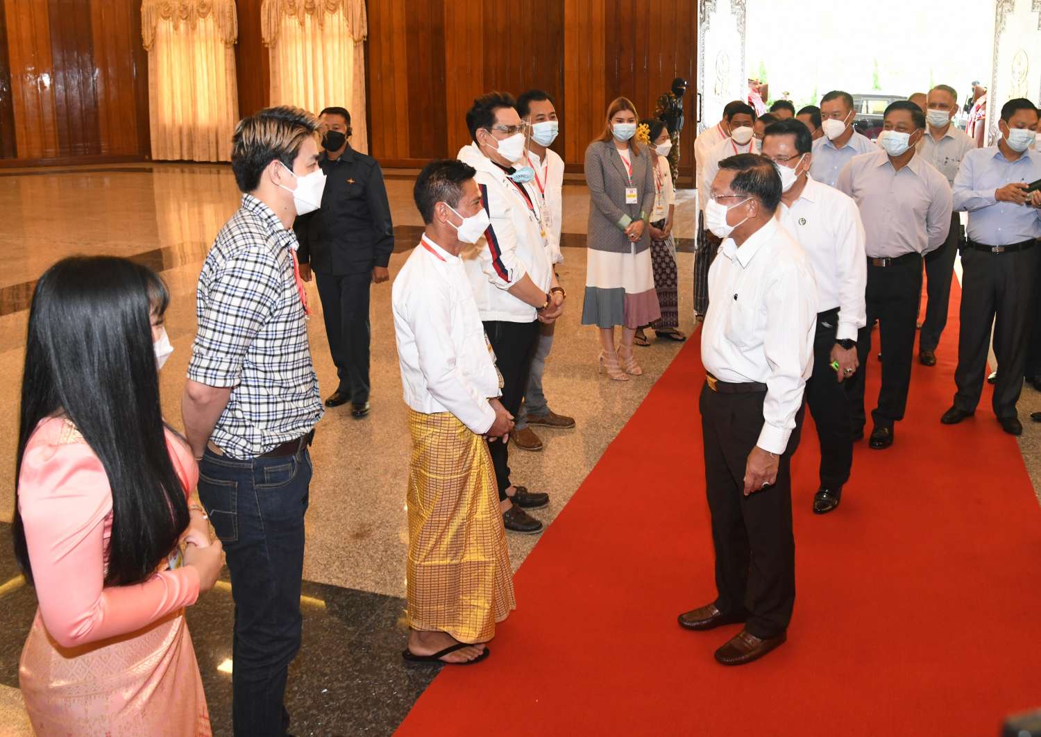 နိုင်ငံတော်စီမံအုပ်ချုပ်ရေးကောင်စီဥက္ကဋ္ဌ၊ နိုင်ငံတော်ဝန်ကြီးချုပ် ဗိုလ်ချုပ်မှူးကြီး မင်းအောင်လှိုင် စာပေ၊ ရုပ်ရှင်၊ သဘင်၊ ဂီတ ကဏ္ဍအသီးသီးမှ အနုပညာရှင်များနှင့် တွေ့ဆုံ