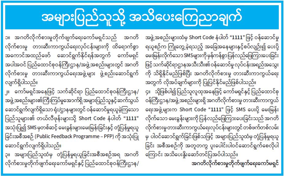 အများပြည်သူသို့ အသိပေးကြေညာချက်