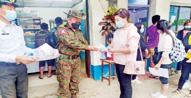 ထိုသို့လက်ခံရာတွင် သက်ဆိုင်ရာပြည်သူ့ဆေးရုံများမှ ကျန်းမာရေးဆိုင်ရာ တာဝန်ရှိသူများ၊ တပ်မတော်ဆေးတပ်ဖွဲ့ဝင်များက ကိုဗစ်-၁၉ ရောဂါစစ်ဆေးပေး ခြင်း၊ Quarantine ဝင်ရောက်ရမည့် အထောက်အထားစာရွက်စာတမ်းများ ပြုလုပ် ပေးခြင်း၊ ကျန်းမာရေးဝန်ကြီးဌာန၏ ညွှန်ကြားချက်များ ကိုရှင်းလင်းပြောကြားခြင်း တို့ကိုစနစ်တကျဆောင်ရွက်ပေးပြီး တိုင်းစစ်ဌာနချုပ်အသီးသီးမှ တာဝန်ရှိသူ များ၊ ဌာန ဆိုင်ရာတာဝန်ရှိသူများကလိုအပ်သည်များကူညီဆောင်ရွက်ပေးကြသည်။