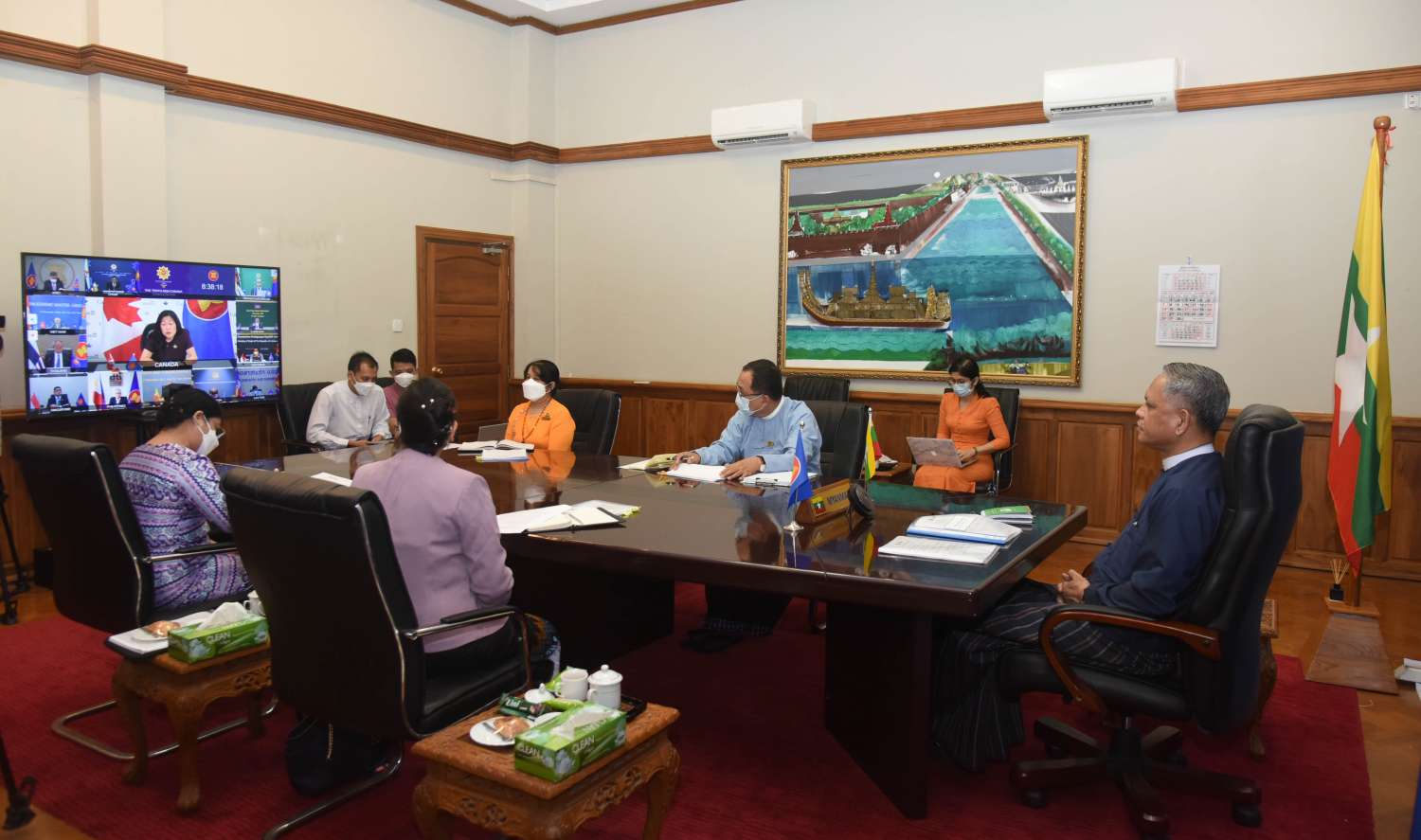 ရင်းနှီးမြှုပ်နှံမှုနှင့် နိုင်ငံခြားစီးပွားဆက်သွယ်ရေးဝန်ကြီးဌာန၊ ပြည်ထောင်စုဝန်ကြီး ဦးအောင်နိုင်ဦးသည် ယနေ့နံနက် (၇) နာရီတွင် ဗီဒီယိုကွန်ဖရင့်ဖြင့် ကျင်းပသည့် (၁၀)ကြိမ် မြောက် အာဆီယံ-ကနေဒါ စီးပွားရေးဝန်ကြီးများအစည်းအဝေးကို နေပြည်တော်ရှိ ရင်းနှီးမြှုပ် နှံမှုနှင့် နိုင်ငံခြားစီးပွားဆက်သွယ်ရေးဝန်ကြီးရုံးမှ တက်ရောက်ခဲ့သည်။