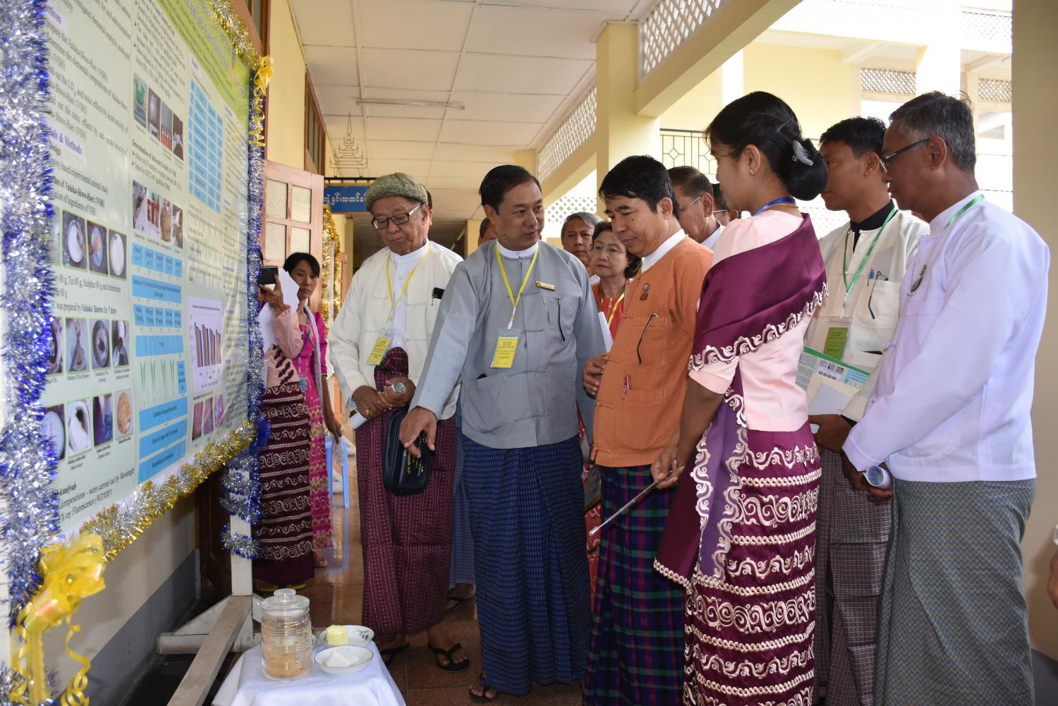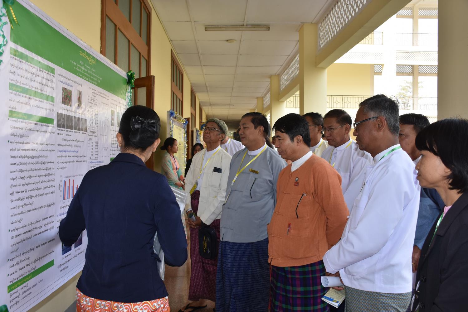 ထို့နောက် ခေတ္တဝန်ကြီးချုပ်နှင့် အဖွဲ့သည် ပြသထားသော တိုင်းရင်းဆေးသုတေသနပိုစတာများအား ကြည့်ရှုရာ ပိုစတာစာတမ်းရှင်များက အသေးစိတ် ရှင်းလင်းပြောကြားခဲ့သည်။