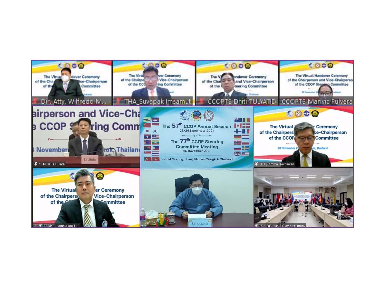 အရှေ့ဖျားအာရှနှင့် အရှေ့တောင်အာရှနိုင်ငံများ၏ ဘူမိသိပ္ပံဆိုင်ရာ ပူးပေါင်း ဆောင်ရွက်ရေး ကော်မတီ (Coordinating Committee for Geoscience Programmes in East and South East Asia (CCOP) ၏ (၅၇) ကြိမ်မြောက် နှစ်ပတ်လည် အစည်းအဝေးနှင့် (၇၇) ကြိမ်မြောက် ဦးဆောင်ကော်မတီအစည်းအဝေး (The 57th CCOP Annual Session and the 77th CCOP steering Committee Meeting) နှင့် ဆက်စပ်အစည်းအဝေးများကို နိုဝင်ဘာ ၂၃ ရက်မှ ၂၅ ရက်အထိ ထိုင်းနိုင်ငံ၊ ဘန်ကောက် မြို့ရှိ CCOP ရုံးချုပ်နှင့် ဗီယမ်နမ်နိုင်ငံ၊ ဟနွိုင်းမြို့တို့မှ Virtual ဖြင့်ကျင်းပရာ CCOP အဖွဲ့ဝင် မြန်မာနိုင်ငံဆိုင်ရာ အမြဲတမ်း ကိုယ်စားလှယ် သယံဇာတနှင့် သဘာဝပတ်ဝန်းကျင် ထိန်းသိမ်းရေးဝန်ကြီးဌာန၊ ဘူမိဗေဒလေ့လာရေးနှင့် ဓာတ်သတ္တု ရှာဖွေရေး ဦးစီးဌာန ညွှန်ကြားရေးမှူးချုပ် ဒေါက်တာသက်တင်ညွန့်နှင့် ဌာနအကြီးအကဲများ ပါဝင်တက်ရောက် ဆွေးနွေးခဲ့ကြသည်။