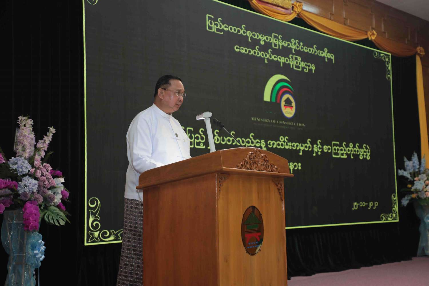 ဆောက်လုပ်ရေးဝန်ကြီးဌာနသည် သမိုင်းကြောင်းရှည်လျားစွာ မားမားမတ်မတ် ရပ်တည်လာခဲ့သော ဌာနကြီးတစ်ခုဖြစ်ပြီး နိုင်ငံတော်၏ အားကိုးအားထားပြုနိုင်သည့်၊ ပြည်သူလူထုက ယုံကြည်အားကိုးသည့် ဂုဏ်သိက္ခာရှိသောဝန်ကြီးဌာနအဖြစ် နောင်နှစ်ပေါင်း များစွာ ဆက်လက်ဖြစ်တည်နိုင်ရေးအတွက် ယခု တာဝန်ထမ်းဆောင်နေသူ အရာထမ်း / အမှုထမ်းများမှ နောင်မျိုးဆက်သစ်များကို တိုးတက်ပြောင်းလဲ လာသည့် ခေတ်နှင့်အညီ အရည်အချင်း ပြည့်မီသူများအဖြစ် ပြုစုပျိုးထောင်၍ ခေတ်အဆက်ဆက် ပခုံးပြောင်းတာဝန်များ လွှဲပြောင်းထမ်းဆောင်သွားကြရန် မှာကြားလိုကြောင်း ပြောကြားသည်။