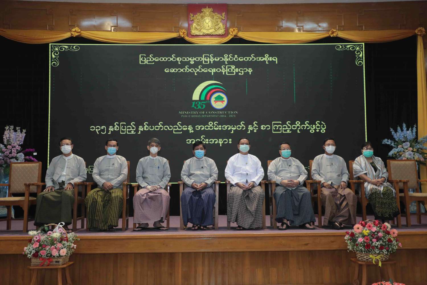 ဆောက်လုပ်ရေးဝန်ကြီးဌာန Public Works Department ၏ (၁၃၅) နှစ်မြောက် နှစ်ပတ်လည်နေ့ အထိမ်းအမှတ် အခမ်းအနားကို ယနေ့နံနက်ပိုင်းတွင် နေပြည်တော် ဆောက်လုပ်ရေးဝန်ကြီးဌာန စုဝေးခန်းမဆောင်၌ ကိုဗစ်-၁၉ ညွှန်ကြားချက်များနှင့်အညီ ကျင်းပသည်။