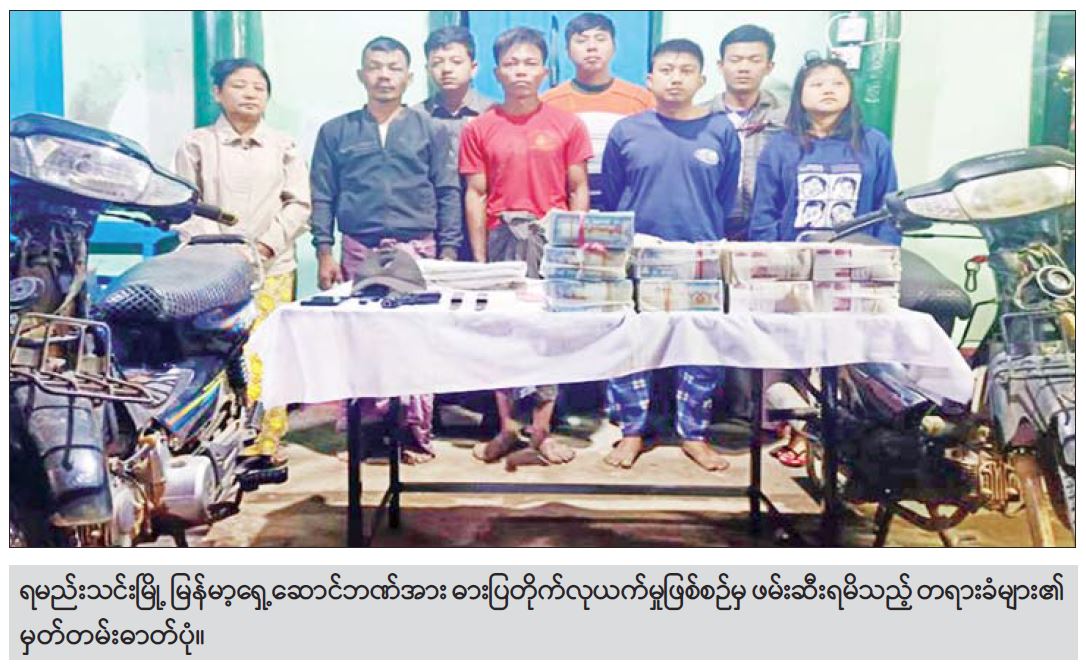 သို့ဖြစ်ပါ၍ လုံခြုံရေးတပ်ဖွဲ့ဝင်များ ပါဝင်သောပူးပေါင်းအဖွဲ့၏ အပူတပြင်းကြိုးပမ်းဖော်ထုတ် မှုကြောင့် ရမည်းသင်းမြို့ရှိ မြန်မာ့ရှေ့ဆောင်ဘဏ် လုယက်မှုကျူးလွန်ရာတွင် ပူးပေါင်း ပါဝင်ခဲ့ သူများအား လုယက်မှုဖြစ်ပွားချိန်မှ ၁၂ နာရီအတွင်း သက်သေခံငွေကြေး၊ ပစ္စည်းများနှင့်အတူ ဖော်ထုတ်ဖမ်းဆီးရမိခဲ့ပြီး တရားခံများအား ဥပဒေနှင့်အညီ ထိရောက်စွာအရေးယူနိုင်ရေး ဆက်လက် ဆောင်ရွက်သွားမည်ဖြစ်ကြောင်း သိရသည်။