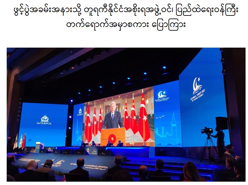 အင်တာပိုလ်၏ ဖိတ်ကြားချက်အရ ပြည်ထဲရေးဝန်ကြီးဌာန ဒုတိယဝန်ကြီး၊ မြန်မာနိုင်ငံ ရဲတပ်ဖွဲ့ ရဲချုပ် ဒုတိယဗိုလ်ချုပ်ကြီး သန်းလှိုင် ဦးဆောင်၍ အဆင့်မြင့်ရဲအရာရှိကြီးများ ပါဝင်သည့် မြန်မာကိုယ်စားလှယ်အဖွဲ့သည် တူရကီနိုင်ငံ၊ အစ္စတန်ဘူလ်မြို့တွင် နိုဝင်ဘာ ၂၃ ရက်မှ ၂၅ ရက်အထိ ကျင်းပသည့် (၈၉) ကြိမ်မြောက် အင်တာပိုလ် အထွေထွေ ညီလာခံ (89th Session of INTERPOL General Assembly) သို့ တက်ရောက်ခဲ့သည်။