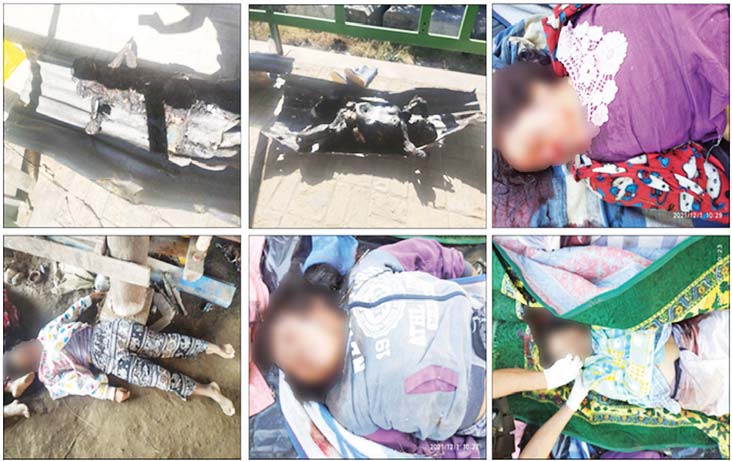 အကြမ်းဖက်သမားများ၏ ရက်စက်စွာ သတ်ဖြတ်မီးရှို့ခဲ့မှုများကြောင့် ဒေါ်ခင်တိုးနှင့် ဒေါ်ခင်ဝင်း တို့ ၂ ဦးမှာ နေအိမ်အတွင်း မီးလောင်ကျွမ်း၍လည်းကောင်း၊ ဒေါ်တင်ထွေး၊ ဒေါ်ဝင်းမာ၊ ဒေါ်ရှမ်းနှင့် မစနေမ(ခ)မနွယ်ဇင်လင်းတို့ ၄ ဦးမှာ ကျည်ထိမှန် ဒဏ်ရာများဖြင့်လည်းကောင်း သေဆုံးခဲ့ကြပြီး ဦးတိုက်ငွေ ပိုင်ဆိုင်သည့် သွပ်မိုး၊ အုတ်ကာ၊ အုတ်ခင်း ၂ ထပ်တိုက် တစ်လုံးနှင့် ဒေါ်ခင်နှင်း ပိုင်ဆိုင်သည့် သွပ်မိုး၊ ပျဉ်ကာ ၂ ထပ် နေအိမ်တစ်လုံးတို့ မီးလောင်ပျက်စီး ဆုံးရှုံးခဲ့ရသည်။