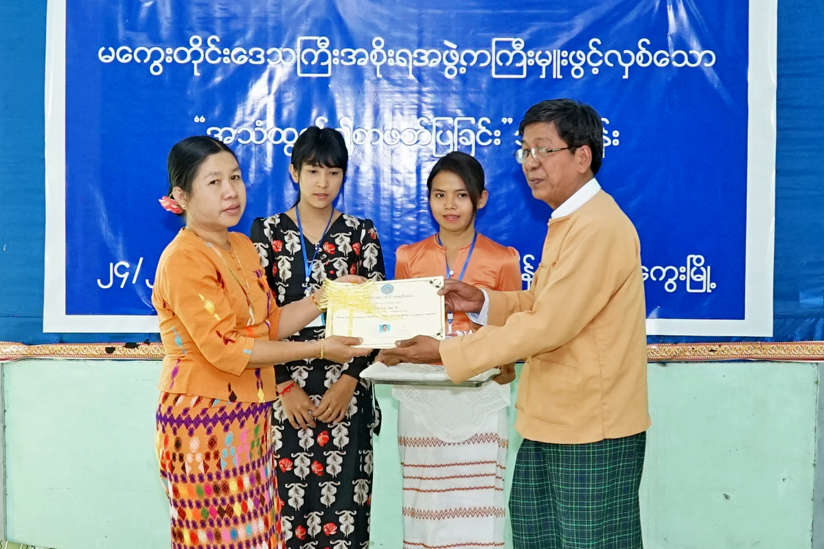ထို့နောက် အဆိုပါသင်တန်းသို့ တက်ရောက်ခဲ့ကြသည့် မကွေးတိုင်းဒေသကြီးအတွင်းမှ အခြေခံ ပညာဦးစီး ဌာနအောက်မှ ကျောင်းစာကြည့်တိုက် တာဝန်ခံဆရာ/ဆရာမများ၊တက္ကသိုလ်/ကောလိပ်များမှ ဆရာကြီး/ ဆရာမကြီး များ၊ တိုင်းဒေသကြီးပြန်/ဆက်ဦးစီးဌာန ခရိုင်(၅)ခရိုင်မှ စာကြည့်တိုက်မှူးများနှင့် ကိုယ်ထူကိုယ်ထ စာကြည့်တိုက် များမှ စာကြည့်တိုက်မှူးများ စုစုပေါင်း(၃၃)ဦးတို့အား ဝန်ကြီးနှင့်တာဝန်ရှိ သူတို့က သင်တန်းဆင်းလက်မှတ်များ ပေးအပ်ခဲ့ကြောင်း သိရသည်။