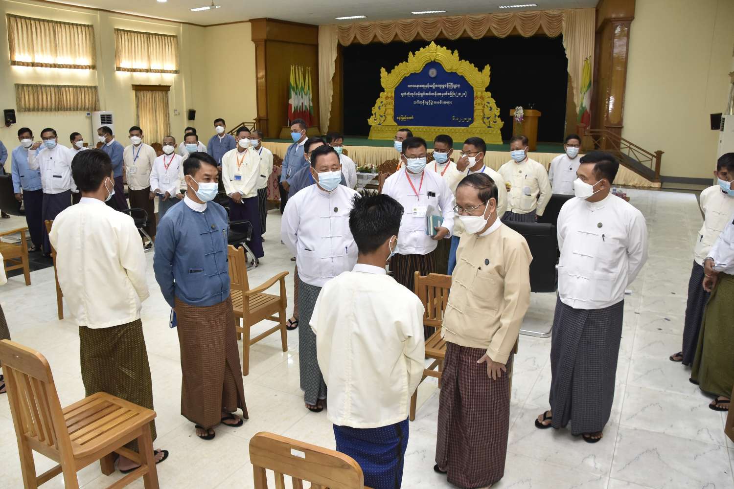 သာသနာရေးနှင့်ယဉ်ကျေးမှုဝန်ကြီးဌာန၌ တာဝန်ထမ်းဆောင်မည့် ပြည်ထောင်စုတိုင်းရင်း သားလူငယ်များ စွမ်းရည်ဖွံ့ဖြိုးရေးဒီဂရီကောလိပ် (ရန်ကုန်၊စစ်ကိုင်း) တို့မှ ကျောင်းဆင်း ဝန်ထမ်းများအထက် ဖွင့်လှစ်သည့် ရက်တိုလုပ်ငန်းခွင်သင်တန်းအမှတ်စဉ် (၁/၂၀၂၁) ဖွင့်ပွဲအခမ်း အနားကို ယနေ့နံနက် ၉ နာရီတွင် အဆိုပါဝန်ကြီးဌာန၊ စုပေါင်းအစည်းအဝေးခန်းမ၌ ကိုဗစ်-၁၉ ရောဂါ ကာကွယ်၊ ထိန်းချုပ်ရေးဆိုင်ရာ ညွှန်ကြားချက်များနှင့်အညီ ကျင်းပသည်။