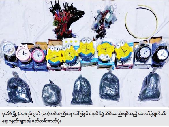 တရားခံ ဖြိုးလေး (ခ)ကိုဖြိုး ၏ ထွက်ဆိုချက်အရ ဒီဇင်ဘာလ ၄ ရက်တွင် ပုသိမ်မြို့၊ (၁၀)ရပ်ကွက်၊ (၁၀)လမ်းမကြီးရှိ ဖမ်းဆီးရန်ကျန် ဒေါ်မြနှစ် နေအိမ်၌ ယမ်းထုပ် ၅ ထုပ်၊ ချိန်ကိုက်မိုင်းပြုလုပ်ရာတွင် အသုံးပြုသည့် စားပွဲတင်နာရီ ၁၀ လုံး၊ ဒီတိုနေတာ ၅၀ ချောင်း နှင့် ဖောက်ခွဲရေး ဆက်စပ်ပစ္စည်းများအား သိမ်းဆည်းရမိခဲ့သည်။
