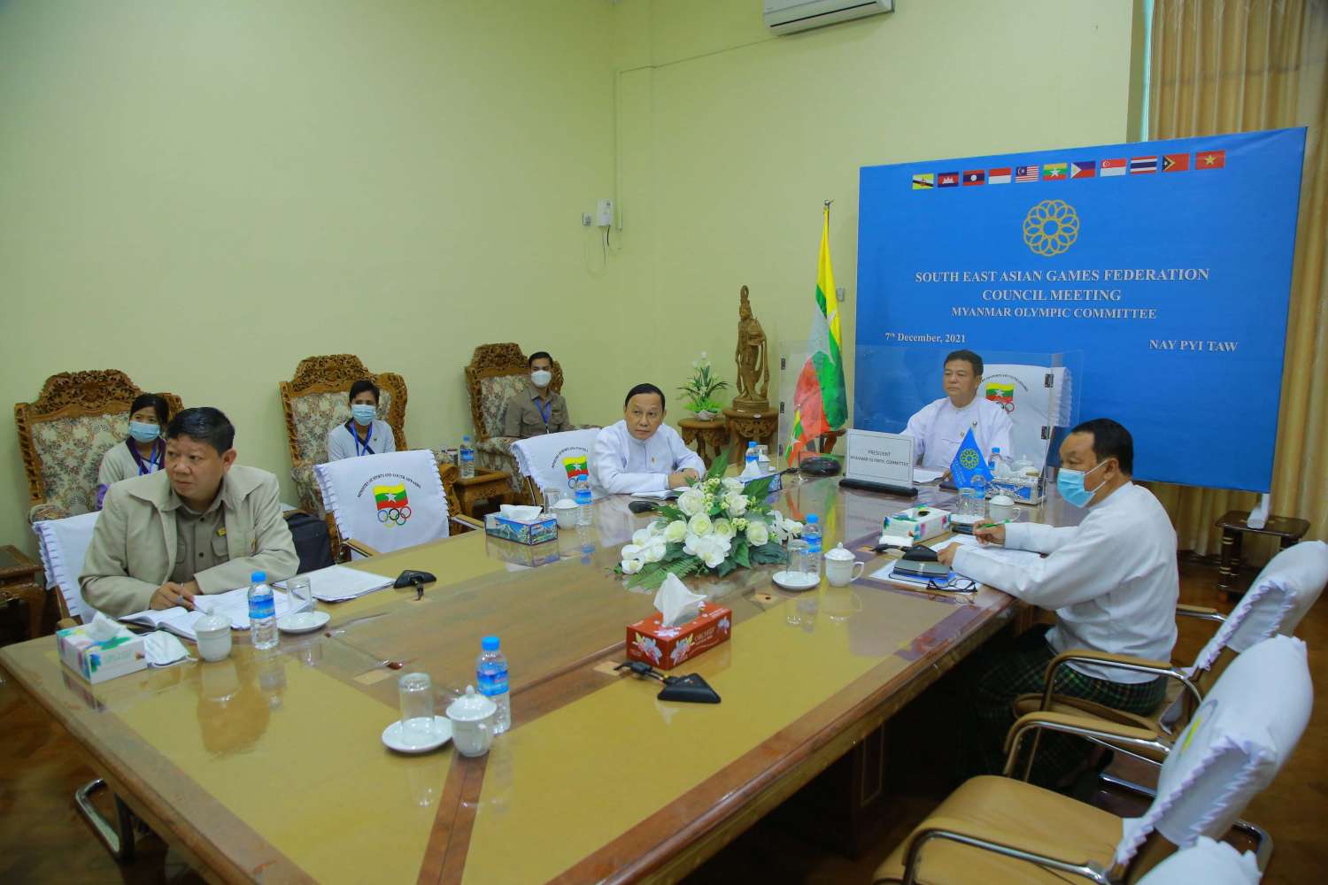 SEA GAMES ပြိုင်ပွဲများ အောင်မြင်စွာကျင်းပနိုင်ရေးအတွက် South East Asian Games Federation (SEAGF) Council အစည်းအဝေးကို ယနေ့မွန်းလွဲ (၁၂) နာရီခွဲတွင် နေပြည်တော်ရှိ ရုံးအမှတ် (၃၁) အစည်းအဝေးခန်းမ၌ ဗီဒီယိုကွန်ဖရင့်စနစ်ဖြင့် ကျင်းပသည်။