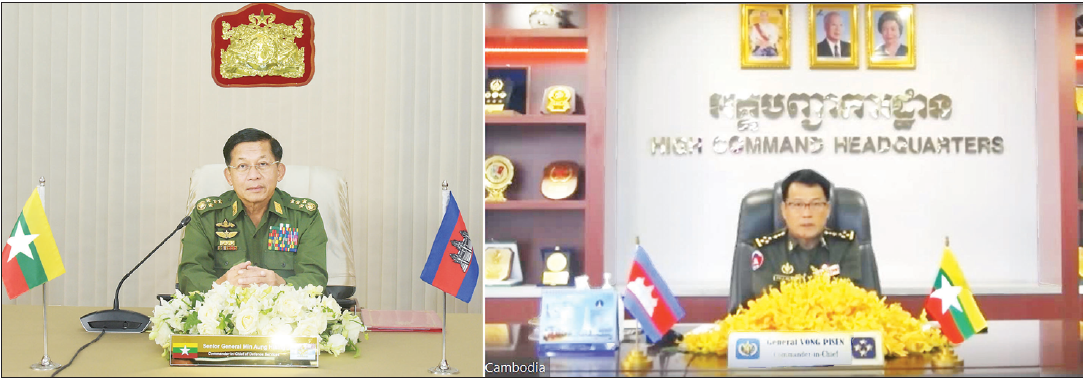 နိုင်ငံတော်စီမံအုပ်ချုပ်ရေးကောင်စီဥက္ကဋ္ဌ၊ တပ်မတော်ကာကွယ်ရေးဦးစီးချုပ် ဗိုလ်ချုပ်မှူးကြီး မင်းအောင်လှိုင်သည် ကမ္ဘောဒီးယားဘုရင့် တပ်မတော်ကာကွယ်ရေး ဦးစီးချုပ် General VONG PISEN နှင့်ယနေ့ညနေပိုင်းတွင် Video Conferen ဖြင့် တွေ့ဆုံဆွေးနွေးသည်။