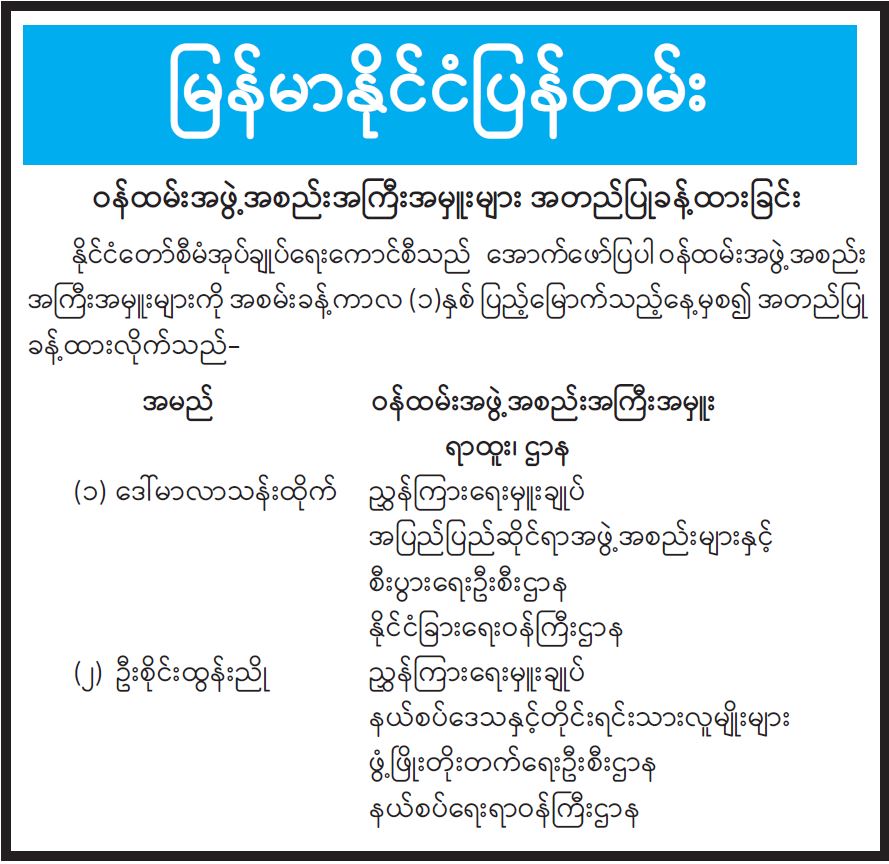 ဝန်ထမ်းအဖွဲ့အစည်းအကြီးအမှူးများ အတည်ပြုခန့်ထားခြင်း