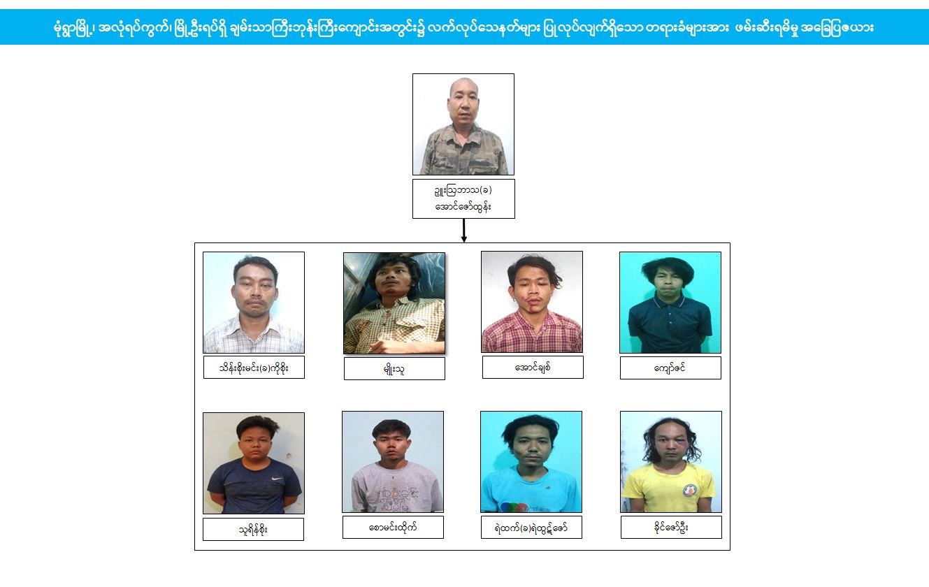 ဖမ်းဆီးရမိတရားခံ သိန်းစိုးမင်း(ခ)ကိုစိုး၏ ထွက်ဆိုချက်အရ ဖမ်းဆီးရန်ကျန် ဖိုးသားကြီး(ခ) နိုင်မင်းထက်မှ နိုဝင်ဘာလတွင် လက်လုပ်သေနတ်နှင့် လက်လုပ်ခဲယမ်းများ ပြုလုပ်ပေးရန် အကူအညီတောင်းခံခဲ့သဖြင့် မျိုးသူ၊ အောင်ချစ်၊ ကျော်ဇင်၊ သူရိန်စိုး၊ စောမင်းထိုက်၊ ရဲထက်(ခ) ရဲထွဋ်ဇော် ဖမ်းဆီးရန်ကျန် မွတ်တီး၊ ဇော်ဝင်း၊ အောင်ခန့်ကျော်၊ ရဲရင့်အောင်၊ ဘွတ်တီးတို့နှင့်အတူ အလုံရပ်ကွက်၊ ချမ်းသာကြီးဘုန်းကြီးကျောင်း၌ လက်လုပ်သေနတ် ၁၅ လက်ခန့် ပြုလုပ်ခဲ့ပြီး ဘုတလင် PDF အမည်ခံအကြမ်းဖက်အဖွဲ့ထံသို့ အကြမ်းဖက်တိုက်ခိုက်မှုများ ပြုလုပ်ရန် ပေးပို့လျက် ရှိကြောင်း ဖော်ထုတ်သိရှိရသည်။