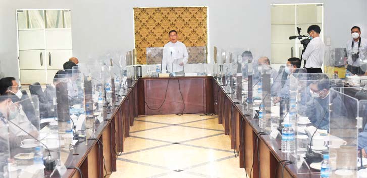 မြန်မာနိုင်ငံအနေဖြင့် စိုက်ပျိုးရေးနှင့် မွေးမြူရေးကို အခြေခံပြီး ကဏ္ဍစုံမှ နိုင်ငံတော်ဖွံ့ဖြိုး တိုးတက်ရေးဆောင်ရွက်လျက်ရှိရာတွင် စီးပွားရေးနှင့် လူမှုရေးဖွံ့ဖြိုးမှု လုပ်ငန်းများတွင် ပတ်ဝန်းကျင် ထိန်းသိမ်းရေးလုပ်ငန်းများကို ကော်မတီ၏ ဦးဆောင်မှုဖြင့် ကဏ္ဍအသီးသီးတွင် ပေါင်းစပ်အကောင် အထည်ဖော်နိုင်ရေး ဆောင်ရွက်ကြရမည်ဖြစ်ကြောင်း၊ ရာသီဥတုပြောင်းလဲမှု လျှော့ချရေး၊ လိုက်လျော ညီထွေဖြစ်စေရေးတို့အတွက် မြန်မာနိုင်ငံရာသီဥတုပြောင်းလဲမှု ဆိုင်ရာမူဝါဒ၊ မဟာဗျူဟာနှင့် ပင်မလုပ်ငန်းအစီအစဉ်များကို သက်ဆိုင်ရာကဏ္ဍအလိုက် စီမံကိန်း များတွင် ထည့်သွင်းအကောင် အထည် ဖော်ဆောင်ရွက်ရန် လိုအပ်ကြောင်း၊ အလားတူ စွန့်ပစ် ပစ္စည်းများအန္တရာယ်ကို စနစ်တကျ စီမံဆောင်ရွက်နိုင်ရေးအတွက် မြန်မာနိုင်ငံ အမျိုးသားအဆင့် စွန့်ပစ်ပစ္စည်းစီမံခန့်ခွဲမှု မဟာဗျူဟာနှင့် ပင်မလုပ်ငန်း အစီအစဉ်များကို နေပြည်တော်၊ တိုင်းဒေသကြီး/ ပြည်နယ် စည်ပင်သာယာရေးနှင့် သက်ဆိုင်ရာဌာနများအနေဖြင့် စနစ်တကျ စီမံဖော်ဆောင်ရွက်ကြရန် တိုက်တွန်းလိုကြောင်း၊ မြန်မာနိုင်ငံ၏ ရေရှည်တည်တံ့ခိုင်မြဲပြီး ဟန်ချက်ညီသောဖွံ့ဖြိုးတိုးတက်မှုစီမံကိန်းပါ ရည်မှန်းချက်များကို ဖော်ဆောင်ရာတွင် ကဏ္ဍအလိုက် ရင်းနှီးမြှုပ်နှံမှုဖွံ့ဖြိုးရေးလုပ်ငန်းများတွင် ပတ်ဝန်းကျင်ဆိုင်ရာ၊ ရာသီဥတုပြောင်းလဲမှုဆိုင်ရာ၊ စွန့်ပစ်ပစ္စည်းစီမံခန့်ခွဲမှုဆိုင်ရာ၊ အစိမ်းရောင်စီးပွားရေးဖွံ့ဖြိုးရေးဆိုင်ရာ၊ ပတ်ဝန်းကျင်ထိခိုက်မှု ဆန်းစစ်ခြင်း လုပ်ငန်းဆိုင်ရာတို့ကို ဟန်ချက်ညီညီ ပြည်ထောင်စုအဆင့်နှင့် နေပြည်တော်၊ တိုင်းဒေသကြီးနှင့် ပြည်နယ်အဆင့်အသီးသီးတွင် ထိရောက်စွာ အကောင်အထည် ဖော်နိုင်မှသာ လက်ရှိကြုံတွေ့နေရသည့်/နောင်တွင်ကြုံတွေ့လာနိုင်သည့် သဘာဝပတ်ဝန်းကျင် ယိုယွင်းပျက်စီး မှုများနှင့် ရာသီဥတုပြောင်းလဲမှု ဆိုးကျိုးများကို လျှော့ချ/ ရှောင်ရှားနိုင်မည် ဖြစ်ကြောင်း၊ အစိုးရမဟုတ်သောအဖွဲ့အစည်း၊ ပုဂ္ဂလိကလုပ်ငန်းရှင်များနှင့် ပြည်သူများ၏ ပူးပေါင်း ဆောင်ရွက် မှုသည် အလွန်အရေးကြီးကြောင်း၊ အသိပညာပေးခြင်းကို အဓိကလုပ်ငန်းစဉ်တစ်ခု အနေနဲ့ အမြဲမပြတ်ဆောင်ရွက်ရန် လိုအပ်သကဲ့သို့ ပတ်ဝန်းကျင်ထိန်းသိမ်းရေးဆိုင်ရာ သတ်မှတ်ချက် များကိုလည်း လိုက်နာစေရေးအတွက် ကြပ်မတ်ဆောင်ရွက်ရန် လိုအပ်ကြောင်း၊ နိုင်ငံတော်နှင့် နိုင်ငံသားများ၏ ရေရှည်အကျိုးစီးပွားဖြစ်ထွန်းစေရေးကို ဦးတည်ပြီး ကော်မတီ၏လုပ်ငန်းတာဝန် များကို အကောင်အထည်ဖော်ရာတွင် ရလဒ်ကောင်းများ ရရှိစေရေးအတွက် ကြိုးပမ်းကြရန် တိုက်တွန်းမှာကြားသည်။