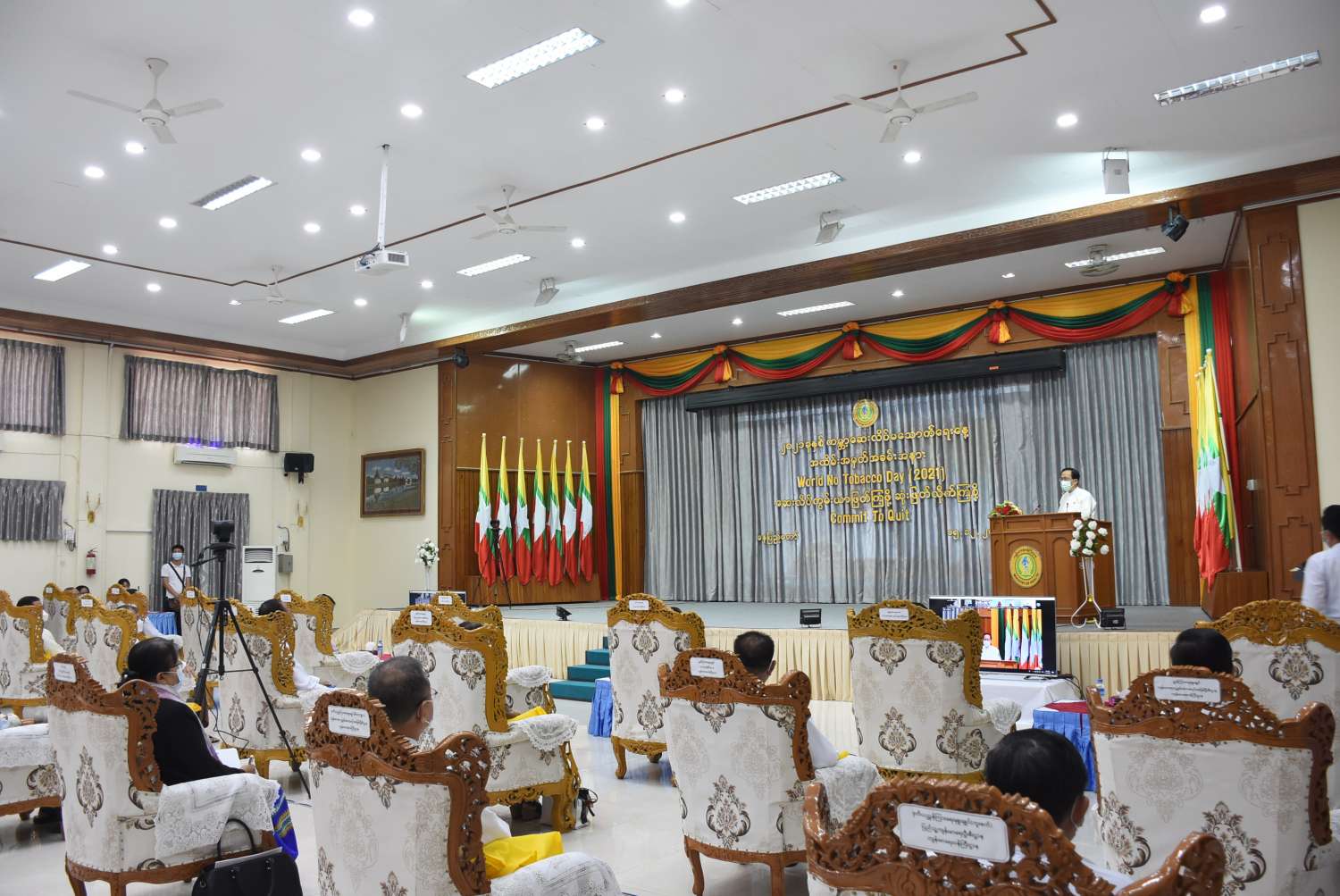“ကမ္ဘာ့ဆေးလိပ်မသောက်ရေးနေ့” အထိမ်းအမှတ် အခမ်းအနားကို ယနေ့ နံနက် ၉ နာရီခွဲတွင် ကျန်းမာရေးဝန်ကြီးဌာန အစည်းအဝေးခန်းမ၌  ကိုဗစ် - ၁၉ ရောဂါ ကာကွယ် ထိန်းချုပ်ရေး စည်းကမ်းများနှင့်အညီ ကျင်းပသည်။