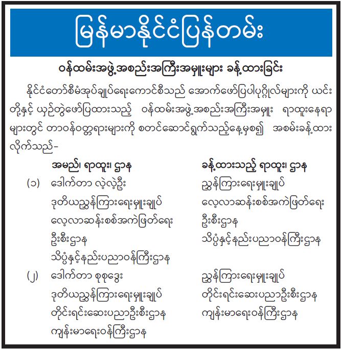 ဝန်ကြီးဌာန ကြေညာချက်များ