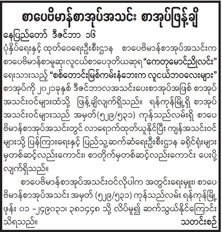 စာပေဗိမာန်စာအုပ်အသင်း စာအုပ်ဖြန့်ချိ