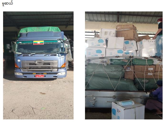 စီးပွားရေးနှင့် ကူးသန်းရောင်းဝယ်ရေး ဝန်ကြီးဌာနအနေဖြင့် ကိုဗစ်-၁၉ ရောဂါ ကာကွယ်၊ ထိန်းချုပ်၊ ကုသရေးဆိုင်ရာ ပစ္စည်းများကို လေကြောင်း၊ ရေကြောင်းနှင့် နယ်စပ်ကုန်သွယ်ရေး စခန်းများမှ နှောင့်နှေးကြန့်ကြာမှုမရှိ တင်သွင်းနိုင်ရေးအတွက် အချိန်နှင့်တစ်ပြေးညီ စီစဉ် ဆောင်ရွက်ပေးလျက်ရှိရာ ယနေ့တွင် အပြည်ပြည်ဆိုင်ရာဆိပ်ကမ်း/ လေဆိပ်များ၊ မူဆယ် (၁၀၅) မိုင် ကုန်သွယ်ရေးဇုန်နှင့် ချင်းရွှေဟော်ကုန်သွယ်ရေးစခန်းတို့မှ ကုမ္ပဏီ(၃)ခု၊ ယာဉ်စီးရေ (၈) စီးဖြင့် အိမ်သုံး အောက်ဆီဂျင်စက် Oxygen Concentrator (၂၅) ခု၊ COVID Test Kit (၁၉၅၇) ခု၊ လက်အိတ် (၃) တန်နှင့် နှာခေါင်းစည်း (Mask) တန် (၅၀) တို့ကို တင်သွင်းခဲ့သည်။