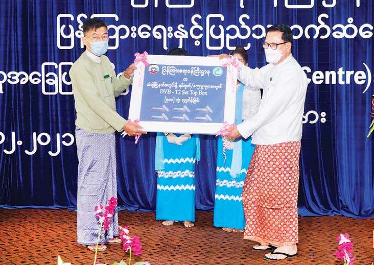 ယင်းနောက် ပြည်ထောင်စုဝန်ကြီး ဦးမောင်မောင်အုန်းက သံတွဲမြို့နယ်အတွင်းရှိ ရပ်ကွက်/ ကျေးရွာများတွင် ဖမ်းယူကြည့်ရှု နိုင်ရန်အတွက် MRTV DVB-T2 Set Top Box အလုံး ၅၀၀ ကို  ပေးအပ်လှူဒါန်းရာ သံတွဲခရိုင် ဒုတိယခရိုင်အုပ်ချုပ်ရေးမှူး ဦးမိုးဇော်လင်းက လက်ခံရယူပြီး တိုင်းရင်းသားလူမျိုးများရေးရာ ဝန်ကြီးဌာန ဒုတိယဝန်ကြီး ဦးဇော်အေးမောင်က သံတွဲခရိုင် ပြည်သူ့စာကြည့်တိုက်အတွက် ရခိုင်တိုင်းရင်းသားစာပေနှင့် ယဉ်ကျေးမှုဆိုင်ရာ စာအုပ်စာစောင် များကို ပေးအပ်လှူဒါန်းရာ ပြန်ကြားရေးနှင့် ပြည်သူ့ဆက်ဆံရေးဦးစီးဌာန သံတွဲခရိုင် ဦးစီးမှူး က လက်ခံရယူသည်။