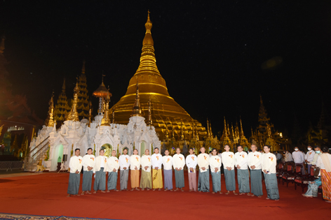 ထို့နောက် ပြည်ထောင်စုဝန်ကြီးများနှင့် တာဝန်ရှိသူများသည် လေးဆူဓာတ်ပုံ ရွှေတိဂုံစေတီတော် မြတ်ကြီးအား လျှပ်စစ်မီးအဆင့်မြှင့် ထွန်းညှိထားမှုကို လှည့်လည်ဖူးမျှော် ကြည်ညိုကြသည်။
