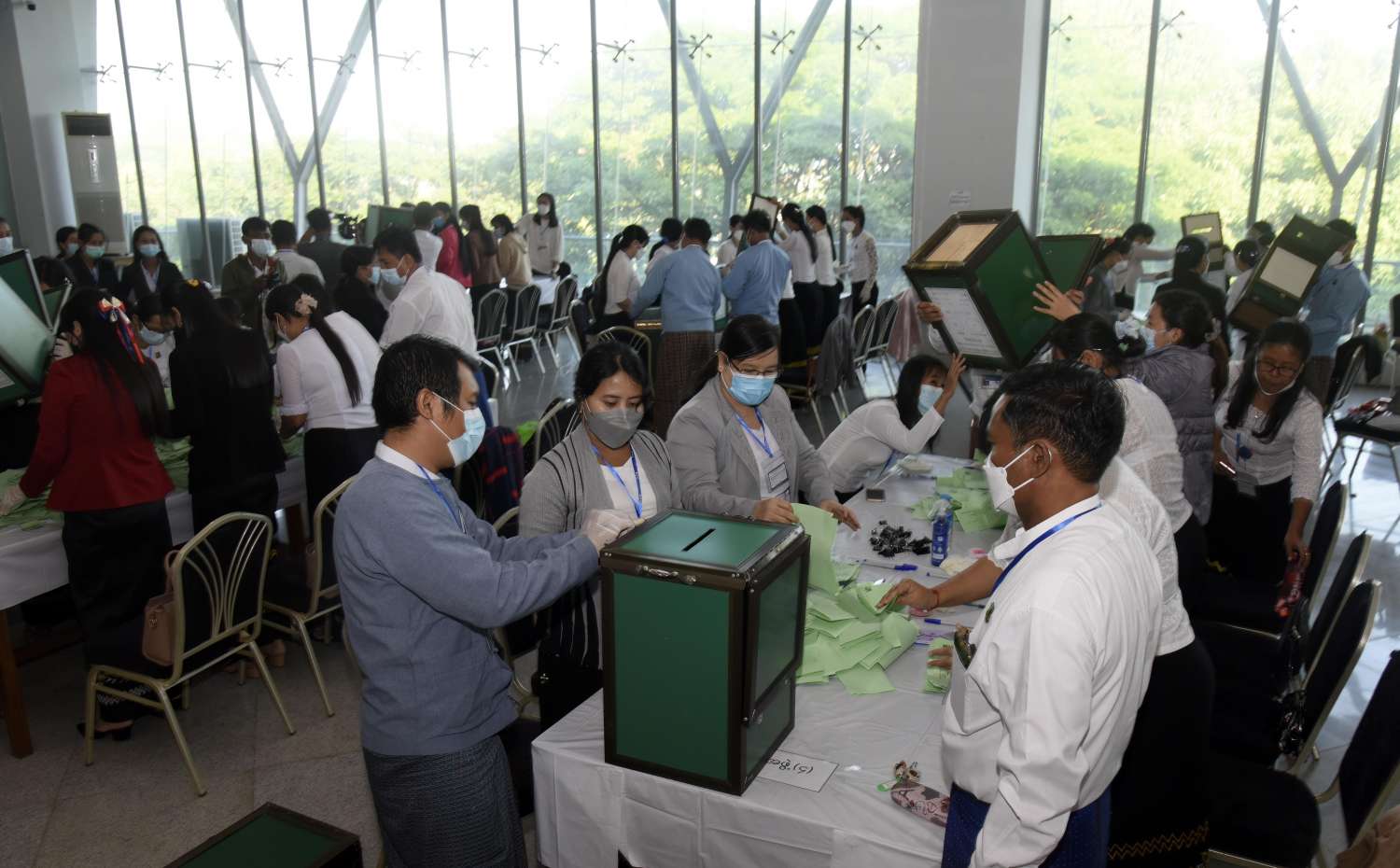 ၂၀၂၁ ခုနှစ် ပုလဲအတွဲများနှင့် ကျောက်စိမ်းအတွဲများပြပွဲ (Mini Gems Emporium) ပဥ္စမနေ့ကို ယနေ့တွင် နေပြည်တော်ရှိ မဏိရတနာ ကျောက်စိမ်းခန်းမ၌ ကိုဗစ် - ၁၉ ကာကွယ်ရေး လမ်းညွှန်ချက်များနှင့်အညီ ဆက်လက်ကျင်းပသည်။