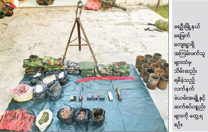 စစ်ကိုင်းတိုင်းဒေသကြီး၊ ရေဦးမြို့နယ်၊ ရေမြက်ကျေးရွာ၌ အကြမ်းဖက်လုပ်ရပ်များ လုပ်ဆောင်ရန်ရောက်ရှိနေသည့် KIA အဖွဲ့၊ NLD ပါတီဝင် အစွန်းရောက်သမားများနှင့် PDF အမည်ခံ အကြမ်းဖက်သမားများ အကြမ်းဖက်လုပ်ရပ်များ လုပ်ဆောင်ရန်အတွက် အစည်းအဝေးပြုလုပ်ရန် စုဝေးနေကြောင်းကို ကျေးရွာသူ၊ ကျေးရွာသားအချို့က လျှို့ဝှက် သတင်းပေးပို့လာခဲ့သဖြင့် လုံခြုံရေးတပ်ဖွဲ့ဝင်များ က ဒီဇင်ဘာ ၂၀ ရက် မွန်းလွဲပိုင်းတွင် ဝင်ရောက်ဖမ်းဆီးခဲ့စဉ် အကြမ်းဖက်သမား လေးဦးအား အသေဖမ်းဆီး ရမိခဲ့ပြီး ၎င်းတို့ထံမှ လက်နက်ခဲယမ်းအချို့နှင့် ဆက်စပ်ပစ္စည်းများ သိမ်းဆည်းရမိခဲ့သည်။