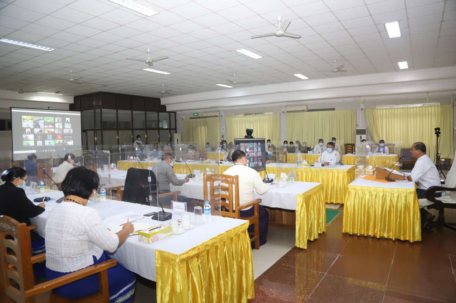 အစည်းအဝေးသို့ မြန်မာနိုင်ငံ ကလေးအလုပ်သမား စောင့်ကြည့်အကဲဖြတ်စိစစ်ရေး လုပ်ငန်းကော်မတီဥက္ကဋ္ဌ၊ အလုပ်သမားဝန်ကြီးဌာန ဒုတိယဝန်ကြီး ဦးဝင်းရှိန်နှင့် ကော်မတီအဖွဲ့ဝင်များ တက်ရောက်ကြပြီး တိုင်းဒေသကြီး/ ပြည်နယ်အဖွဲ့ဝင်များက Video Conference စနစ်ဖြင့် တက်ရောက်ကြသည်။