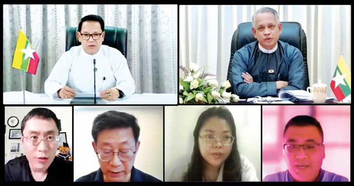 ပြန်ကြားရေးဝန်ကြီးဌာန ပြည်ထောင်စုဝန်ကြီး ဦးမောင်မောင်အုန်းနှင့် ရင်းနှီးမြှပ်နှံမှုနှင့် နိုင်ငံခြားစီးပွား ဆက်သွယ်ရေးဝန်ကြီးဌာန ပြည်ထောင်စုဝန်ကြီး ဦးအောင်နိုင်ဦးတို့သည် ယနေ့ မွန်းလွဲပိုင်းတွင် တရုတ်ပြည်သူ့သမ္မတနိုင်ငံမှ သတင်းမီဒီယာများဖြစ်သည့် CCTV သတင်း ဌာန၊ People’s Daily သတင်းဌာန၊ Guanming Daily သတင်းဌာနနှင့် Xinhua News Agency တို့မှ သတင်းထောက်များအား Online မှတစ်ဆင့် လက်ခံတွေ့ဆုံ၍ နိုင်ငံတော်အစိုးရ၏ ကိုဗစ်-၁၉ ကပ်ရောဂါကာကွယ်တိုက်ဖျက်ရေး ဆောင်ရွက်ချက်များ၊ နှစ်နိုင်ငံ နယ်စပ်ကုန်သွယ်ရေး တိုးမြှင့်ဆောင်ရွက်လျက်ရှိသည့် အခြေအနေ၊ နိုင်ငံစီးပွားရေး ပြန်လည်ဦးမော့လာစေရေးအတွက် ဆောင်ရွက်လျက်ရှိသည့် အခြေအနေ၊ နှစ်နိုင်ငံ ပူးပေါင်းဆောင်ရွက်ရေးနှင့် စီမံကိန်းများ အကောင်အထည်ဖော်ရေး ဆိုင်ရာ ကိစ္စရပ်များနှင့် တည်ငြိမ်ရေးနှင့် လုံခြုံအေးချမ်းရေး အတွက် ဆောင်ရွက်လျက်ရှိသည့် အခြေအနေများနှင့် စပ်လျဉ်းသည့် မေးမြန်းချက်များကို ဖြေကြားကြသည်။