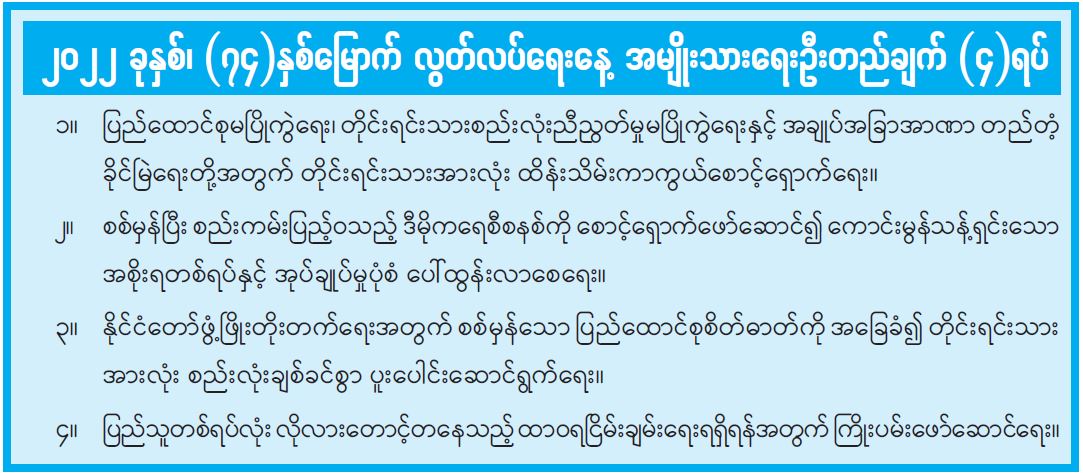 ၂၀၂၂ ခုနှစ်၊ (၇၄)နှစ်မြောက် လွတ်လပ်ရေးနေ့ အမျိုးသားရေးဦးတည်ချက် (၄)ရပ်