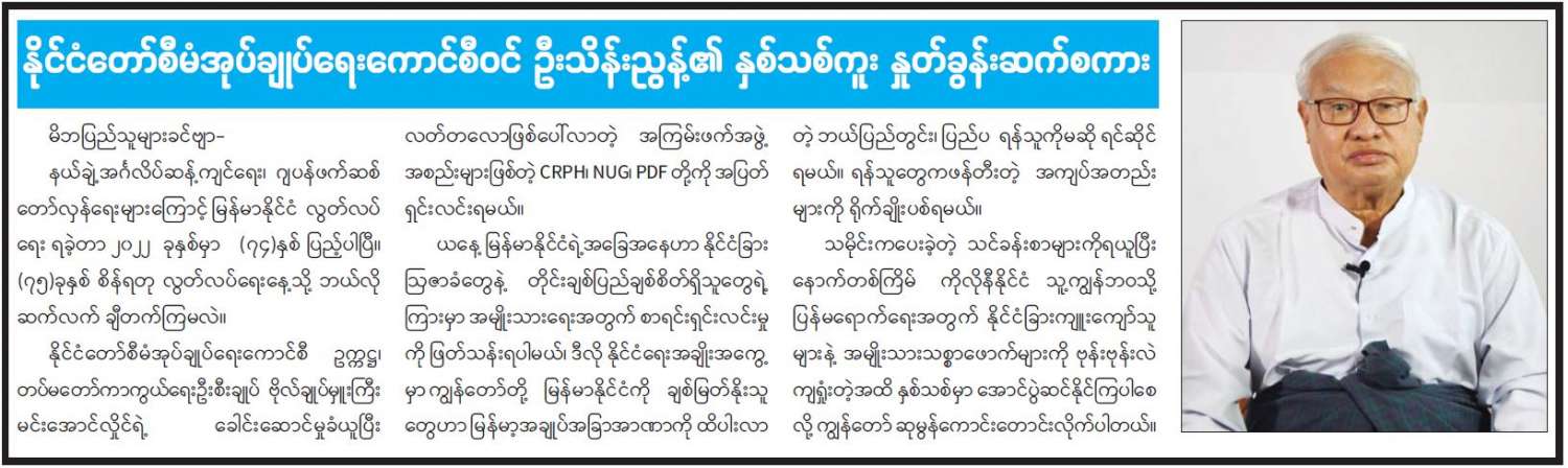 နိုင်ငံတော်စီမံအုပ်ချုပ်ရေးကောင်စီဝင် ဦးသိန်းညွှန့်၏ နှစ်သစ်ကူး နှုတ်ခွန်းဆက်စကား