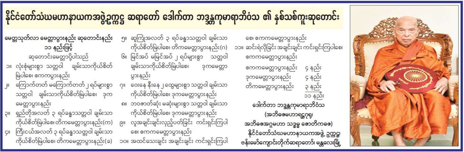 နိုင်ငံတော်သံဃမဟာနာယကအဖွဲ့ဥက္ကဋ္ဌ ဆရာတော် ဒေါက်တာ ဘဒ္ဒန္တကုမာရာဘိဝံသ ၏ နှစ်သစ်ကူးဆုတောင်း