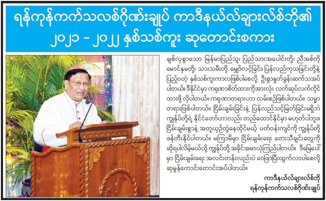 ရန်ကုန်ကက်သလစ်ဂိုဏ်းချုပ် ကာဒီနယ်လ်ချားလ်စ်ဘို၏ ၂၀၂၁ - ၂၀၂၂ နှစ်သစ်ကူး ဆုတောင်းစကား