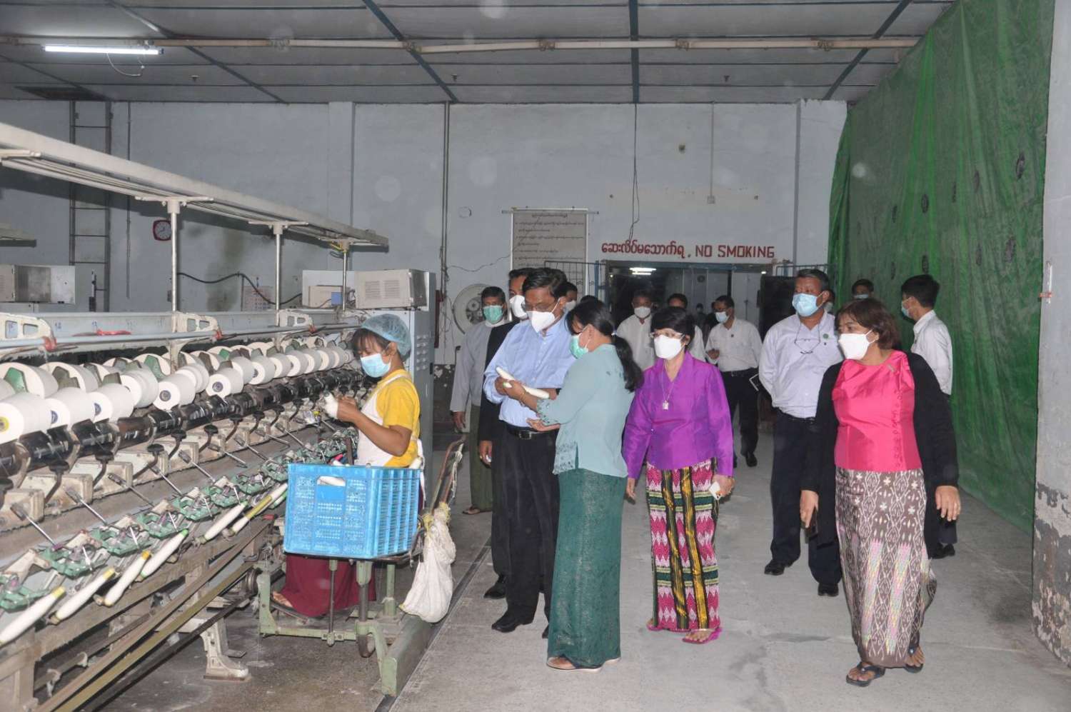 ထို့နောက် လုပ်ငန်းရှင်များက လုပ်ငန်းများ လည်ပတ်ဆောင်ရွက်နေမှုနှင့် တွေ့ကြုံနေရသည့် စိန်ခေါ်မှုများကို တင်ပြဆွေးနွေးကြရာ ပြည်ထောင်စုဝန်ကြီးက ပေါင်းစပ်ညှိနှိုင်း ဆောင်ရွက်ပေးပြီး ချည်မျှင်ထုတ်လုပ်သည့် လုပ်ငန်းစဉ်အဆင့်ဆင့်တို့ကို လှည့်လည်ကြည့်ရှု စစ်ဆေးသည်။