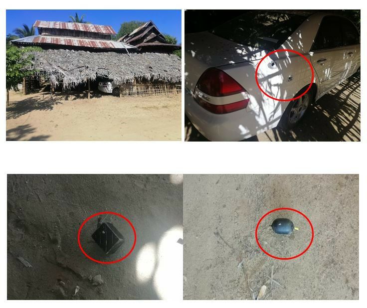 အကြမ်းဖက်သမားများ၏ သေနတ်ဖြင့် ပစ်ခတ်ဖျက်ဆီးခဲ့မှုကြောင့် ဘုန်းကြီးကျောင်းပိုင် MARK II မော်တော်ယာဉ်၏ ယာဘက် နောက်ဘီး အပေါ်ကိုယ်ထည်၌ ကျည် ၂ ချက်ထိမှန် ပျက်စီးခဲ့ပြီး ယာဉ်၏ ဝဲဘက်အခြမ်း မြေကြီးပေါ်၌ မပေါက်ကွဲသေးသည့် လက်လုပ်မိုင်း ၂ လုံးအား တွေ့ရှိရသဖြင့် လုံခြုံရေးတပ်ဖွဲ့ဝင်များက ဖောက်ခွဲရှင်းလင်းခဲ့ပါသည်။