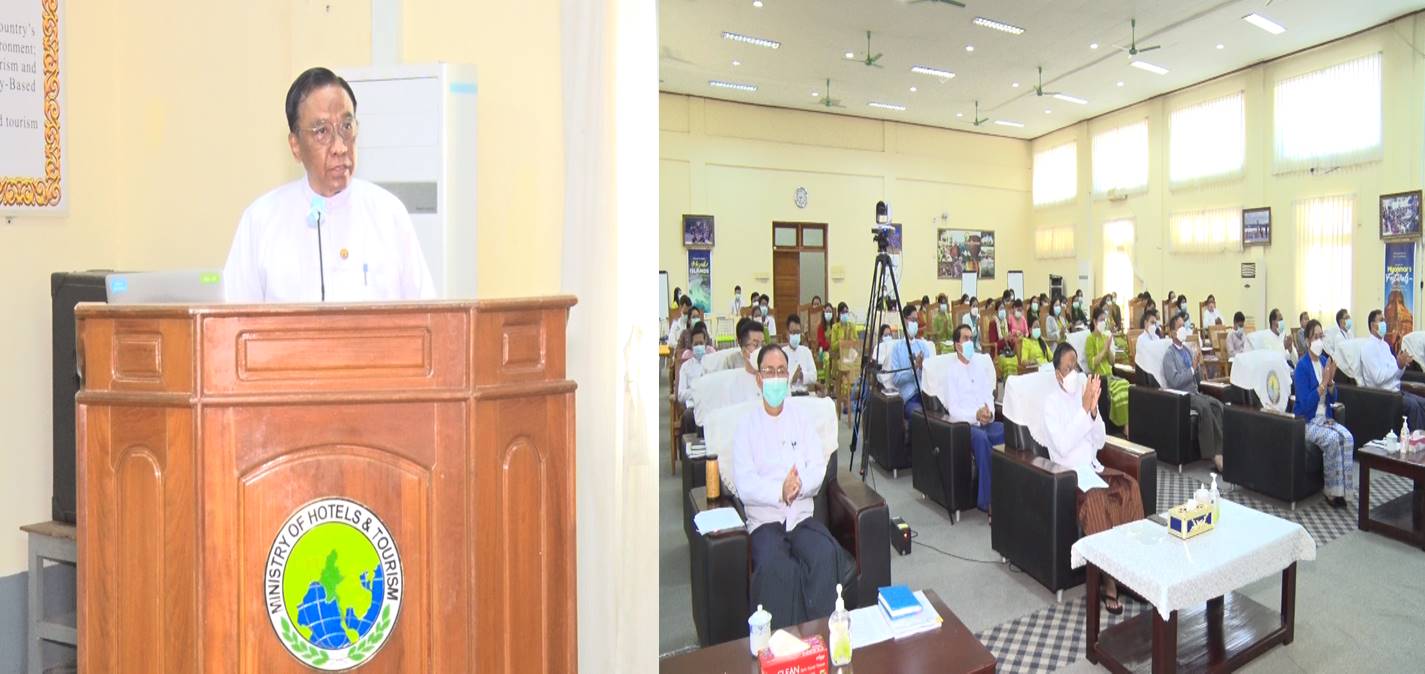 မြန်မာနိုင်ငံ ခရီးသွားလုပ်ငန်း ရေရှည်ဖွံ့ဖြိုးတိုးတက်ရေးအတွက် ပြည်သူ့နီတိနှင့် ကျင့်ဝတ်များ “Civics vs Ethics : Sustainable Tourism Development For Myanmar” ခေါင်းစဉ်ဖြင့် အလုပ်ရုံဆွေးနွေးပွဲကို ယနေ့နံနက်ပိုင်းတွင် ဟိုတယ်နှင့်ခရီးသွားလာရေး ဝန်ကြီးဌာန၊ ကျောက်စိမ်းခန်းမ၌ ဗီဒီယိုကွန်ဖရင့် စနစ်ဖြင့် ကျင်းပသည်။