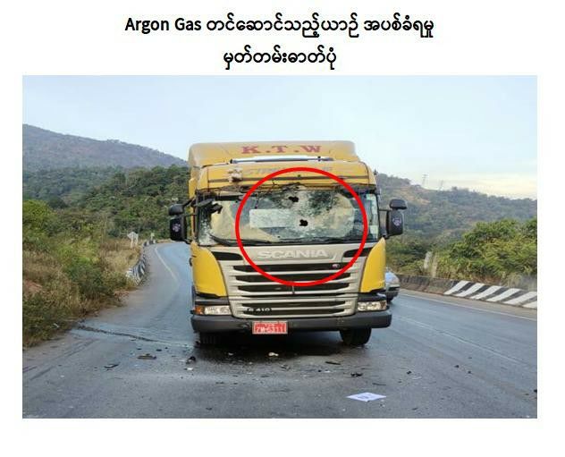 မြဝတီမြို့မှ မန္တလေးမြို့သို့ Argon Gas အရည်များသယ်ဆောင်လာသည့် မော်တော်ယာဉ်အား PDF အမည်ခံအကြမ်းဖက်သမားများက လက်နက်ငယ်များဖြင့် အကြောင်းမဲ့ပစ်ခတ်