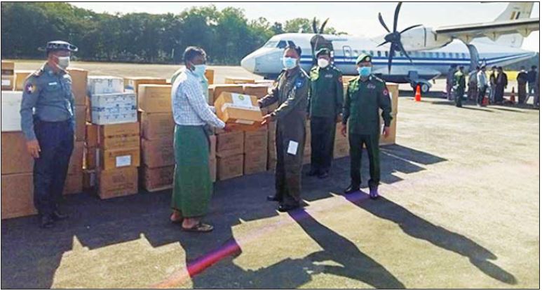 ကိုဗစ်-၁၉ ရောဂါ ဓာတ်ခွဲအတည်ပြုပိုးတွေ့ လူနာများနှင့် သီးသန့်စောင့် ကြည့်ရမည့်သူများအား တပ်မတော်ဆေးရုံများ၊ ပြည်သူ့ဆေးရုံများ၊ ကျန်းမာရေး ဌာနများနှင့် ကိုဗစ်စင်တာများတွင် ကျန်းမာရေးစောင့်ရှောက်ပေးခြင်းနှင့် ပြည်နယ်နှင့်တိုင်းဒေသကြီးအသီးသီး၌ ကိုဗစ်-၁၉ ရောဂါ ကာကွယ်ဆေးထိုးခြင်း လုပ်ငန်းများကို တပ်မတော်သားဆရာဝန်များ၊ ကျန်းမာရေးဝန်ထမ်းများ၊ လူမှုရေးအသင်း အဖွဲ့များပူးပေါင်း၍ အင်တိုက်အားတိုက်ဆောင်ရွက်ပေးလျက်ရှိရာ ၎င်းလုပ်ငန်း များတွင် အထောက်အကူဖြစ်စေရန်အတွက် ကာကွယ်ဆေးများကို တိုင်းဒေသကြီးနှင့်ပြည်နယ် အသီးသီးသို့ သတ်မှတ်အအေးလမ်းကြောင်း စံချိန်စံညွှန်းများအတိုင်း တပ်မတော်(လေ)မှ လေယာဉ်များ၊ Cold  Chain Delivery  Logistics မော်တော်ယာဉ်ကြီးများဖြင့် ပို့ဆောင်ဖြန့်ဖြူးပေးလျက် ရှိသည်။
