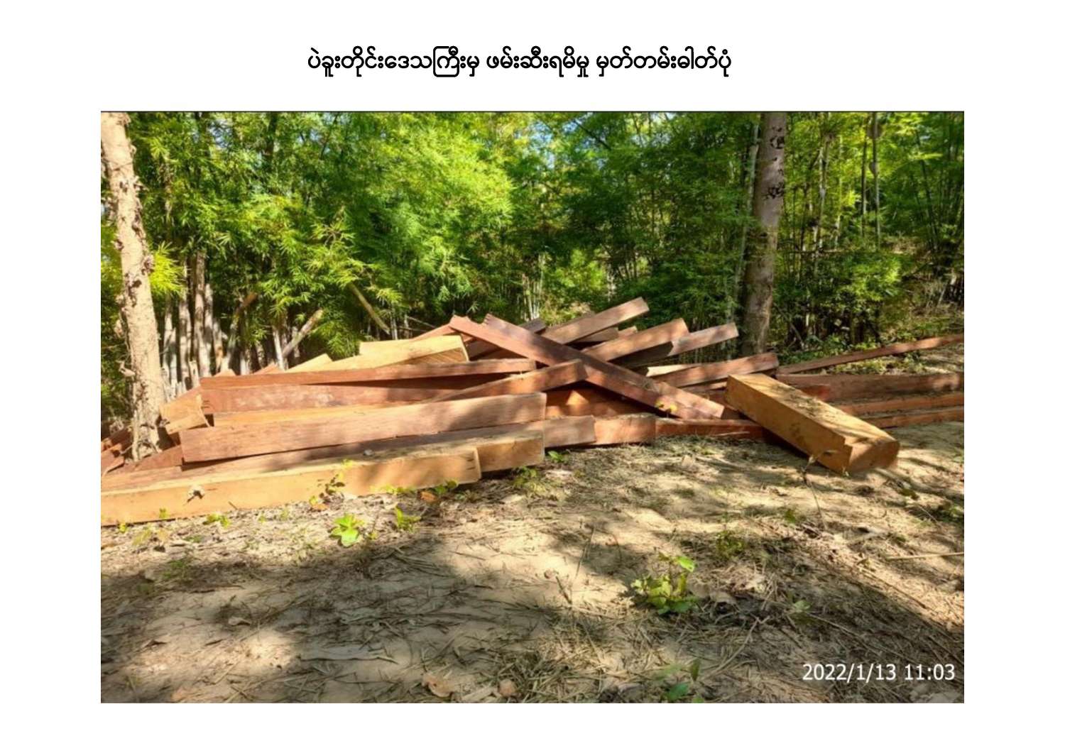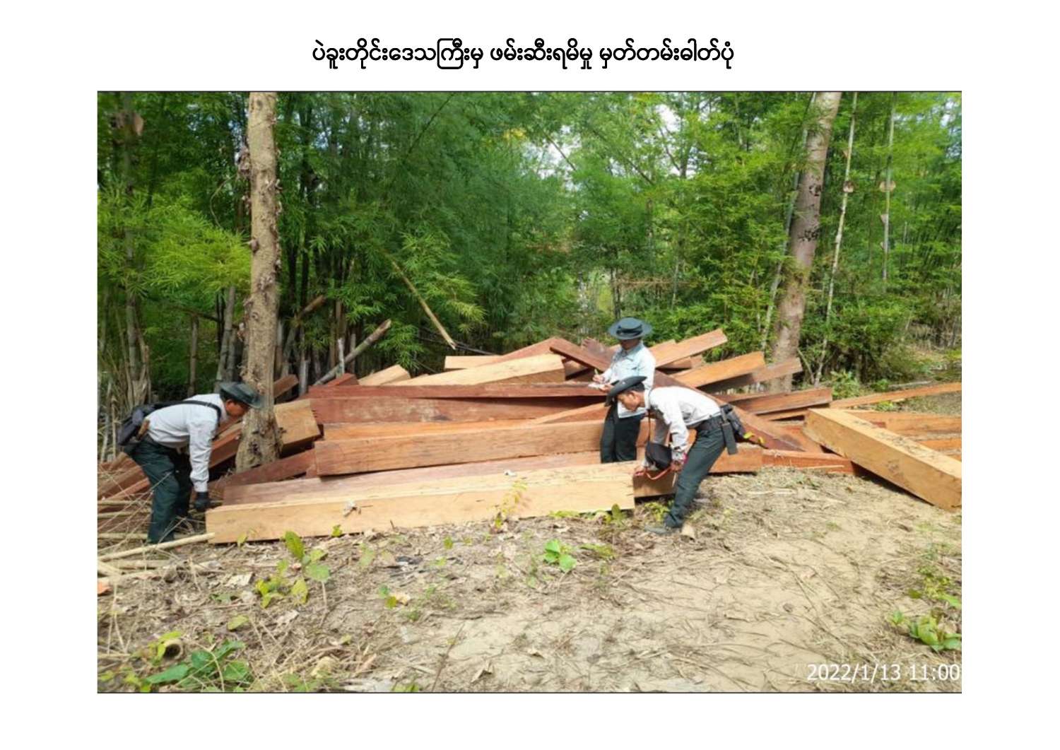 ထို့အပြင် ပဲခူးတိုင်းဒေသကြီး၊ တရားမဝင်ကုန်သွယ်မှု တိုက်ဖျက်ရေးအထူးအဖွဲ့၏ စီမံခန့်ခွဲမှုဖြင့် တိုင်းဒေသကြီး သစ်တောဦးစီးဌာနက ဦးဆောင်၍ ပူးပေါင်းအဖွဲ့များဖြင့် သတင်းအရ သွားရောက် စစ်ဆေးခဲ့ရာ ပဲခူး၊ တောင်ငူနှင့် သာယာဝတီခရိုင် သစ်တောကြိုးဝိုင်းများအတွင်းရှိ တရားမဝင်ကျွန်းသစ် (၁၅ ဒသမ ၆၉၄) တန် (ခန့်မှန်းတန်ဖိုးငွေကျပ် ၃,၈၇၇,၅၀၀) နှင့် သစ်မာ (၁၅ ဒသမ ၄၀၆) တန် (ခန့်မှန်းတန်ဖိုးငွေကျပ် ၂,၉၅၇,၈၀၀)၊ စုစုပေါင်းသစ်မျိုးစုံ (၃၁ ဒသမ ၁)တန် (ခန့်မှန်းတန်ဖိုးငွေကျပ် ၆,၈၃၅,၃၀၀) ကို ဖမ်းဆီးရမိခဲ့ပြီး သစ်တောဦးစီးဌာန၏ လုပ်ထုံးလုပ်နည်းများနှင့်အညီ အရေးယူ ဆောင်ရွက်လျက်ရှိသည်။
