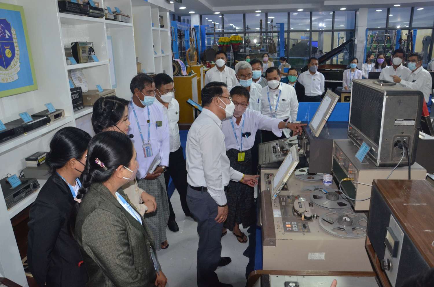 ဆက်လက်၍ ပြည်ထောင်စုဝန်ကြီးနှင့်အဖွဲ့သည် မြန်မာ့အသံနှင့်ရုပ်မြင်သံကြား စိန်ရတုပြတိုက် တည်ဆောက်ပြီးစီးမှုအခြေအနေကို လှည့်လည်ကြည့်ရှုစစ်ဆေးရာ မြန်မာ့အသံနှင့် ရုပ်မြင်သံ ကြား ညွှန်ကြားရေးမှူးချုပ် ဦးရဲနိုင်နှင့် တာဝန်ရှိသူများက လိုက်လံရှင်းလင်းပြသကြပြီး ပြည်ထောင်စုဝန်ကြီးက လိုအပ်သည်များ မှာကြားခဲ့သည်။