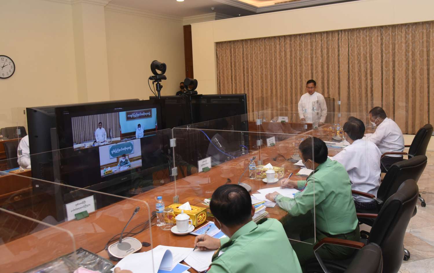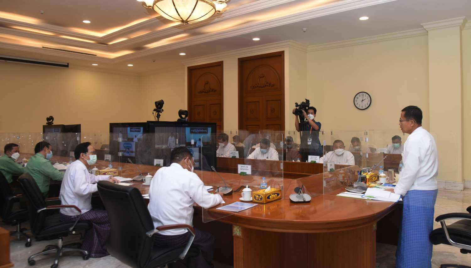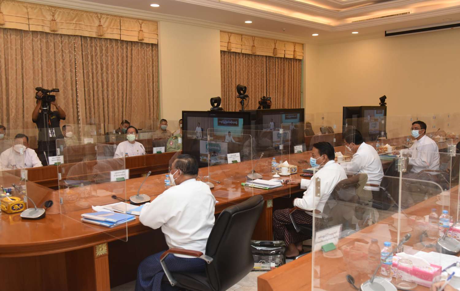 နိုင်ငံတော်စီမံအုပ်ချုပ်ရေးကောင်စီ ဒုတိယဥက္ကဋ္ဌ၊ ဒုတိယဝန်ကြီးချုပ် ဒုတိယဗိုလ်ချုပ်မှူးကြီး စိုးဝင်း ကိုဗစ် - ၁၉ ထိန်းချုပ်ရေးနှင့် အရေးပေါ်တုံ့ပြန်ရေးကော်မတီ လုပ်ငန်းညှိနှိုင်း အစည်းအဝေးသို့ တက်ရောက်အမှာစကားပြောကြား