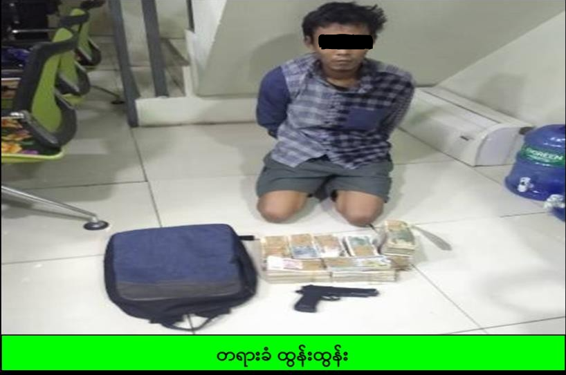 ရန်ကုန်တိုင်းဒေသကြီး၊ လသာမြို့နယ်ရှိ UAB ဘဏ်အား သေနတ်အတုဖြင့် ဝင်ရောက်လုယက်သူ ဒုစရိုက်သမား ၁ ဦးအား ဘဏ်ဝန်ထမ်းနှင့် တာဝန်သိပြည်သူများ၏ ပူးပေါင်းကူညီမှုဖြင့် အချိန်တိုအတွင်းဖမ်းဆီးရမိ