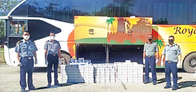တရားမဝင်ကုန်သွယ်မှုတိုက်ဖျက်ရေး ဦးဆောင်ကော်မတီ၏ ကြီးကြပ်ကွပ်ကဲမှုဖြင့် တရားမဝင် ကုန်သွယ်မှုများကို ဥပဒေနှင့်အညီ ထိရောက်စွာ တားဆီးအရေးယူနိုင်ရေး ဆောင်ရွက်လျက် ရှိရာ ဇန်နဝါရီ ၁၇ ရက်တွင် စုံစမ်းစစ်ဆေးရေးအရာရှိ (မန္တလေး)နှင့် စုံစမ်းစစ်ဆေးရေးနှင့် တရားမဝင် ကုန်သွယ်မှုတိုက်ဖျက်ရေးဌာနခွဲ၊ အကောက်ခွန်ဦးစီးဌာနမှ မန္တလေး- လားရှိုး- မူဆယ် ပြည်ထောင်စုလမ်းမကြီး (၂၁/၃)မိုင်ခန့်တွင် စစ်ဆေးမှုများပြုလုပ်ခဲ့ရာ ယာဉ်အမှတ်၊ 1F/8750 (YUTONG Bus) ပေါ်တွင် တရားဝင်စာရွက်စာတမ်း အထောက်အထား တစ်စုံတစ်ရာ တင်ပြနိုင်ခြင်းမရှိဘဲ တင်ဆောင်လာသည့် ဖုန်းမျိုးစုံ ၁၇၀၅ လုံး (ခန့်မှန်းတန်ဖိုးငွေကျပ် ၂၅၀,၆၄၄,၀၀၀)နှင့် အဆိုပါပစ္စည်းများ တင်ဆောင်လာသော YUTONG Bus တစ်စီး ခန့်မှန်းတန်ဖိုး ငွေကျပ် ၃၀,၀၀၀,၀၀၀ စုစုပေါင်း ခန့်မှန်းတန်ဖိုး ငွေကျပ် ၂၈၀,၆၄၄,၀၀၀ ဖမ်းဆီးရမိခဲ့ပြီး အကောက်ခွန်ဦးစီးဌာန၏ လုပ်ထုံးလုပ်နည်းများနှင့်အညီ အရေးယူဆောင်ရွက်လျက်ရှိသည်။