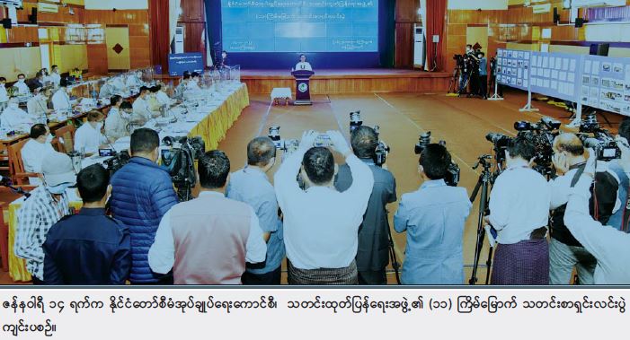 နိုင်ငံတော်စီမံအုပ်ချုပ်ရေးကောင်စီ၊ သတင်းထုတ်ပြန်ရေးအဖွဲ့၏ (၁၁)ကြိမ်မြောက် သတင်းစာရှင်းလင်းပွဲကို ယနေ့မွန်းလွဲပိုင်းတွင် ပြန်ကြားရေးဝန်ကြီးဌာန၊ ဝန်ကြီးရုံး စုပေါင်း အစည်းအဝေးခန်းမ၌ ကျင်းပပြုလုပ်သည်။ အဆိုပါသတင်းစာရှင်းလင်းပွဲတွင် နိုင်ငံတော်စီမံ အုပ်ချုပ်ရေးကောင်စီ သတင်းထုတ်ပြန်ရေးအဖွဲ့၏ အဖွဲ့ခေါင်းဆောင် ဗိုလ်ချုပ် ဇော်မင်းထွန်း၊ ပြည်ထောင်စုရွေးကောက်ပွဲ ကော်မရှင်အဖွဲ့ဝင် ဦးခင်မောင်ဦးနှင့် ဌာနဆိုင်ရာမှ တာဝန်ရှိသူများ က သတင်းမီဒီယာများ၏ သိရှိလိုသည့်မေးမြန်းမှုများကို ပြန်လည်ဖြေကြားသည်။