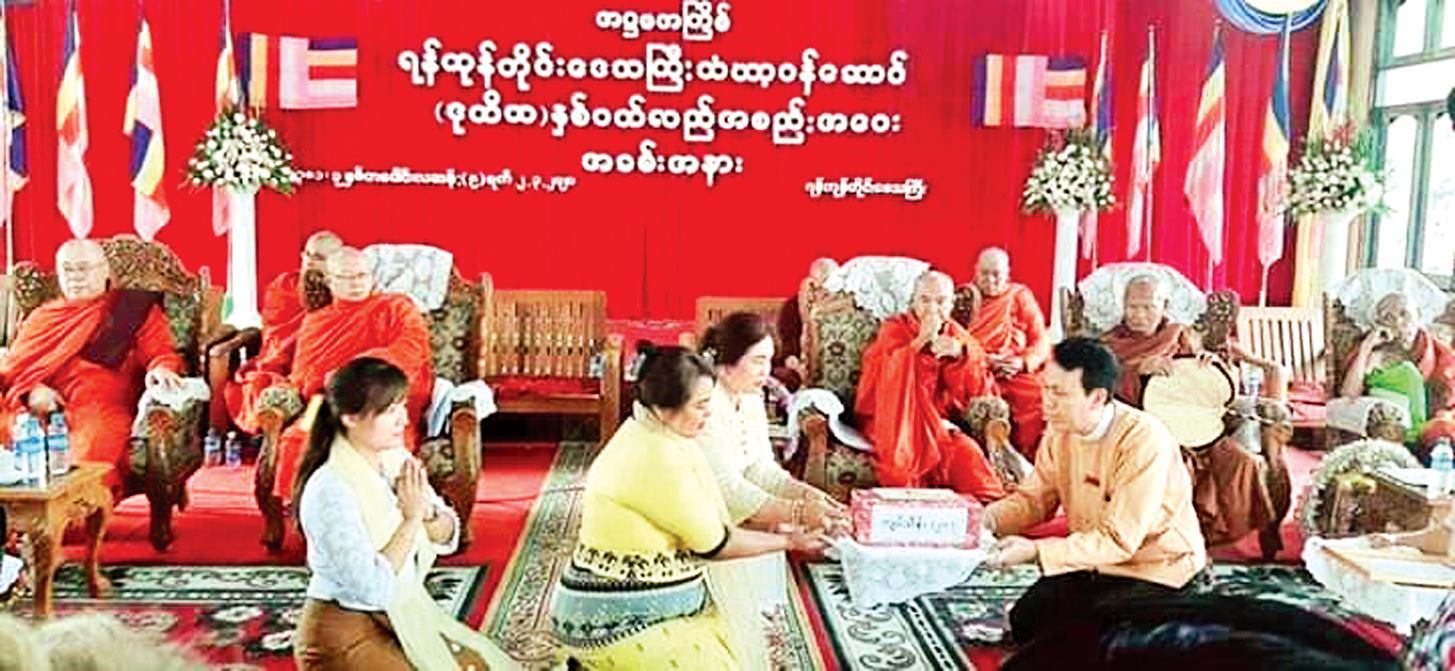 ထို့နောက် တိုင်းဒေသကြီး သံဃ နာယကအဖွဲ့၏ လုပ်ငန်းတာဝန်များ ဆောင်ရွက်ရန်အတွက် အလှူရှင် များက အလှူတော်ငွေများ ပေးအပ် လှူဒါန်းကြရာ စုစုပေါင်း လှူဒါန်းငွေ ကျပ်သိန်းပေါင်း ၃၀၀ ကို တိုင်းဒေသကြီး ဝန်ကြီးချုပ်နှင့် ဥပတ္ထမ္ဘက အဖွဲ့ တို့က လက်ခံရယူသည်။